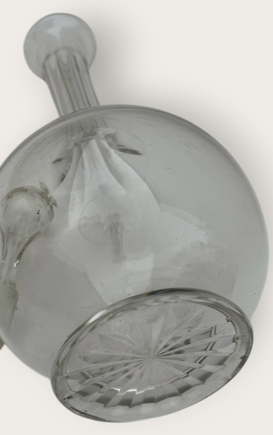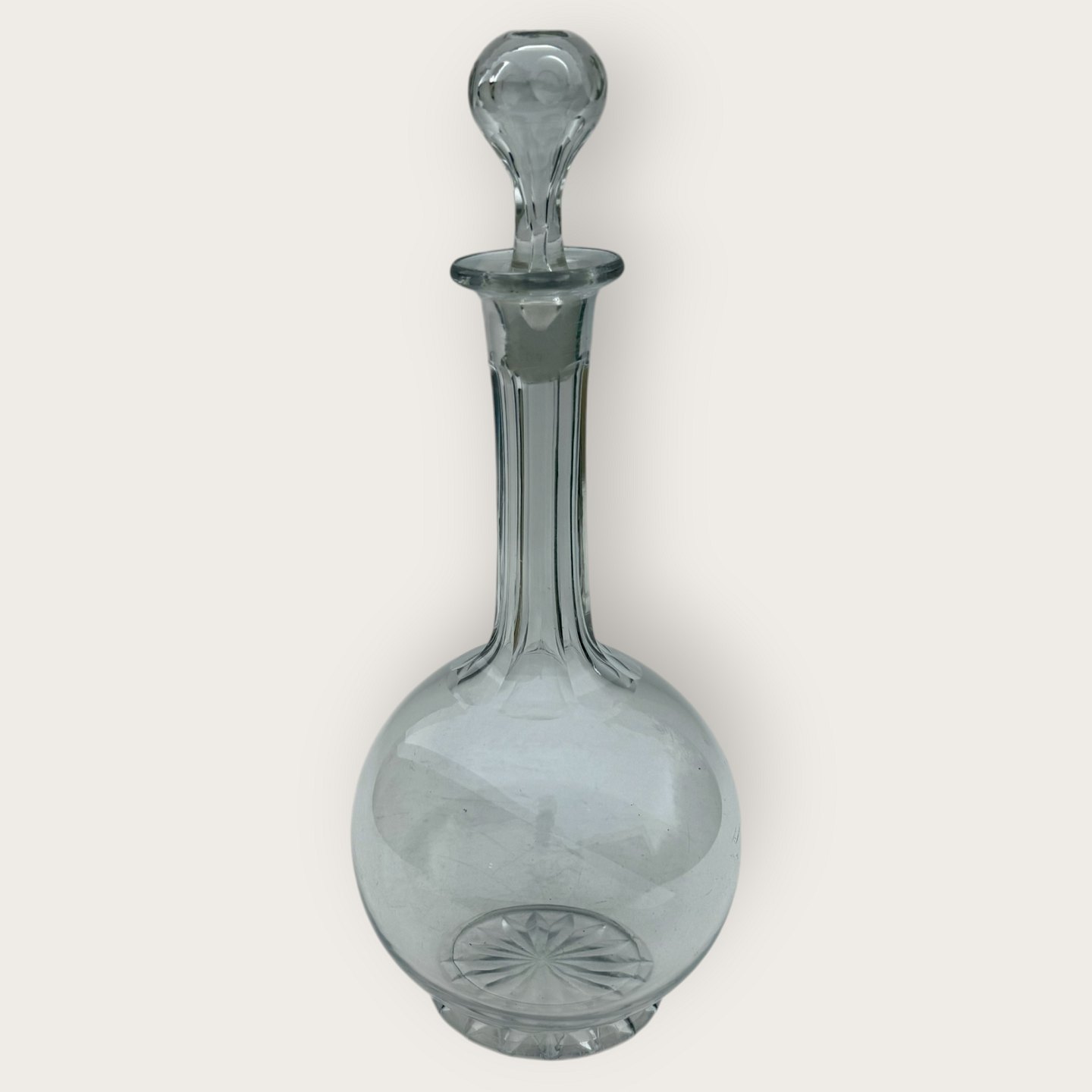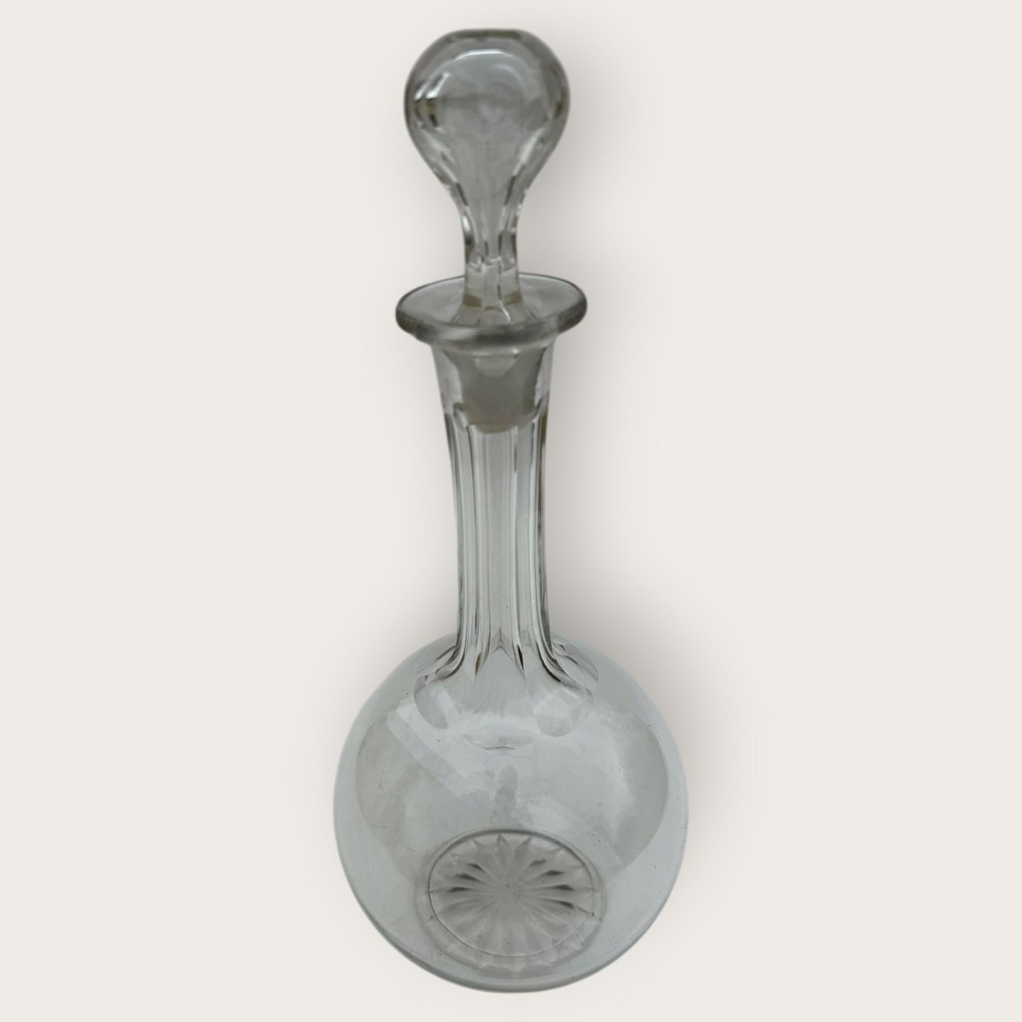 Beskrivelse: Karaffel med slibninger på hals, 30cm høj og 14cm i diameter, pæn stand