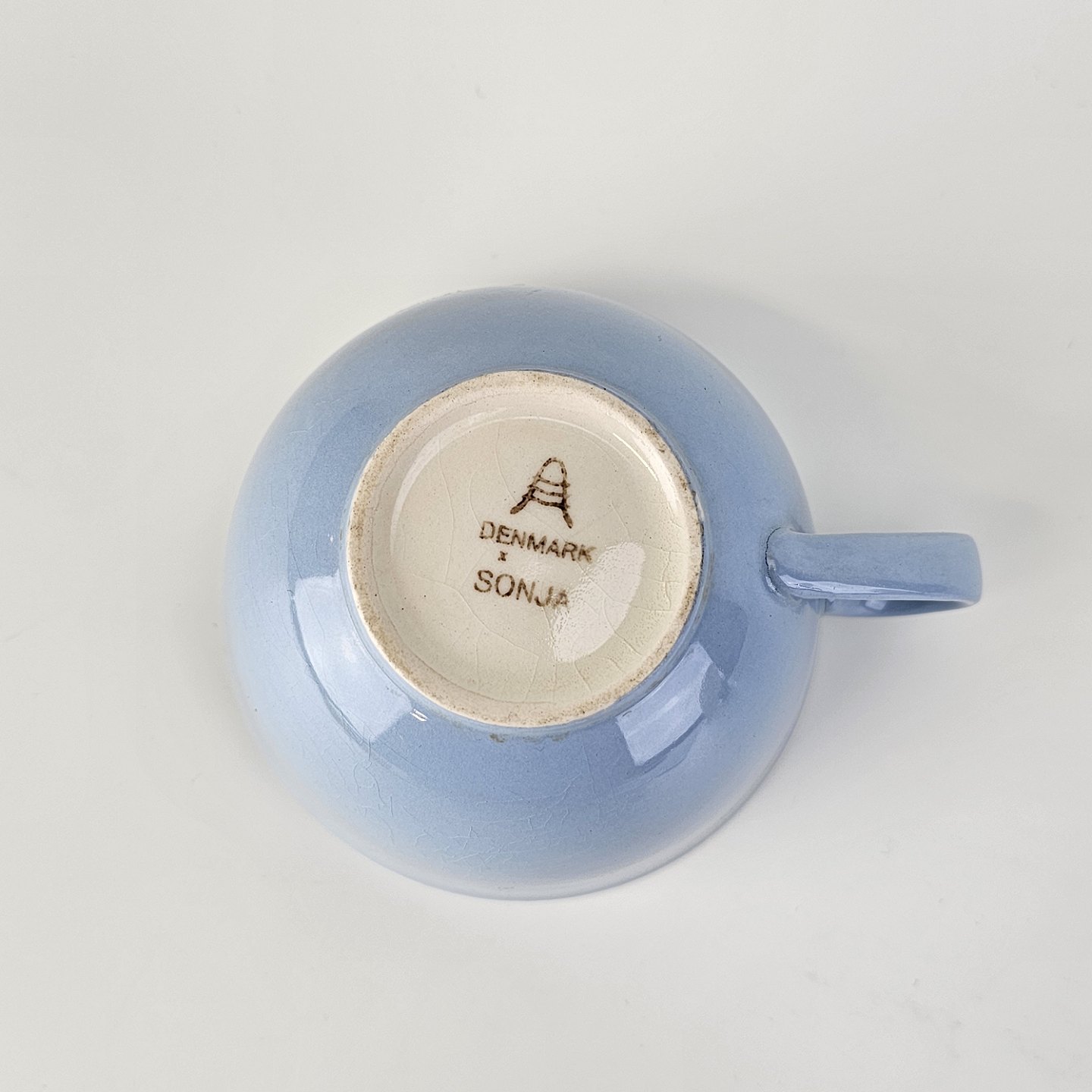 Beskrivelse: Kop med underkop i fajance fra stellet Sonja