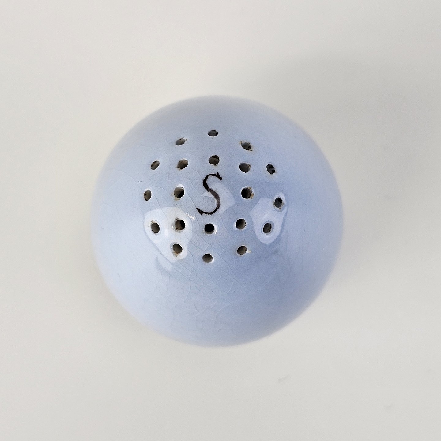 Beskrivelse: Saltbøsse i fajance fra stellet Sonja
