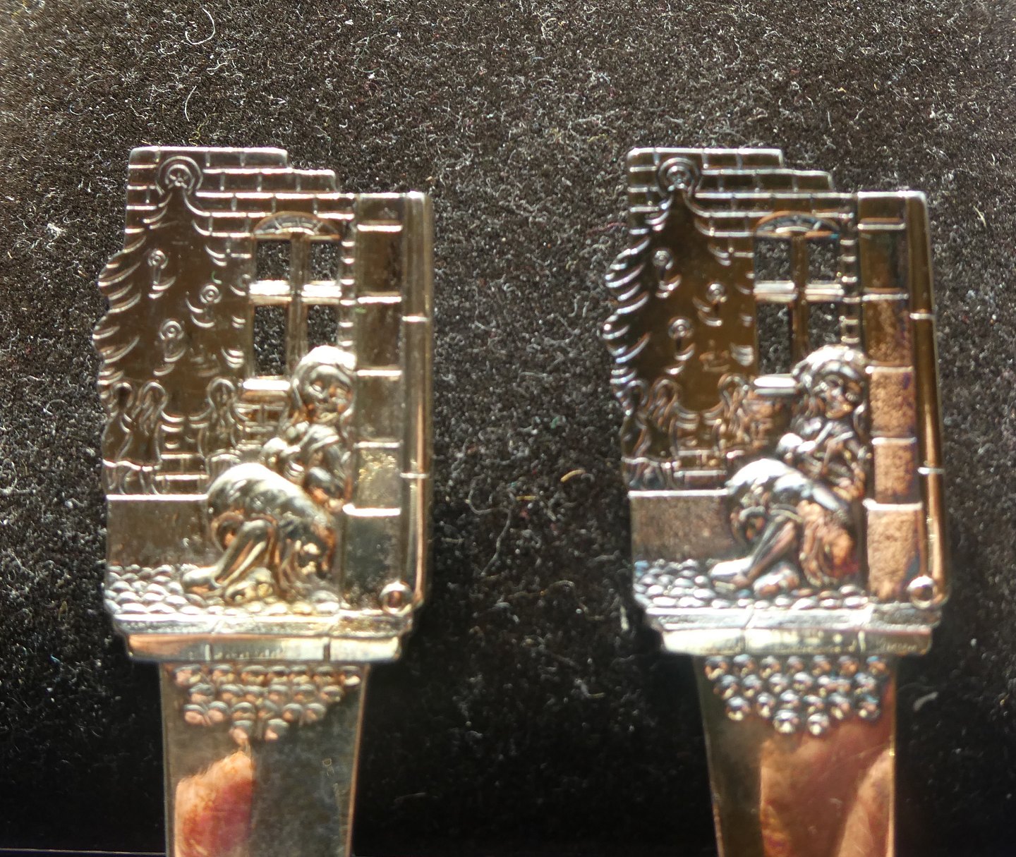 Description: Fairy tales Danish child's cutlery kids cutlery in three Towers gold-plated silver with the Little Match-Seller.