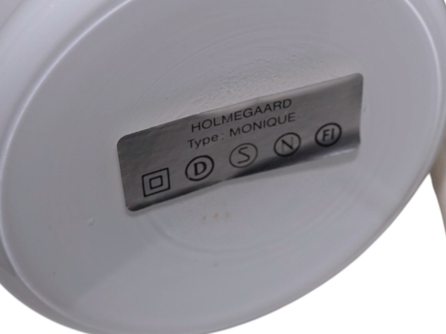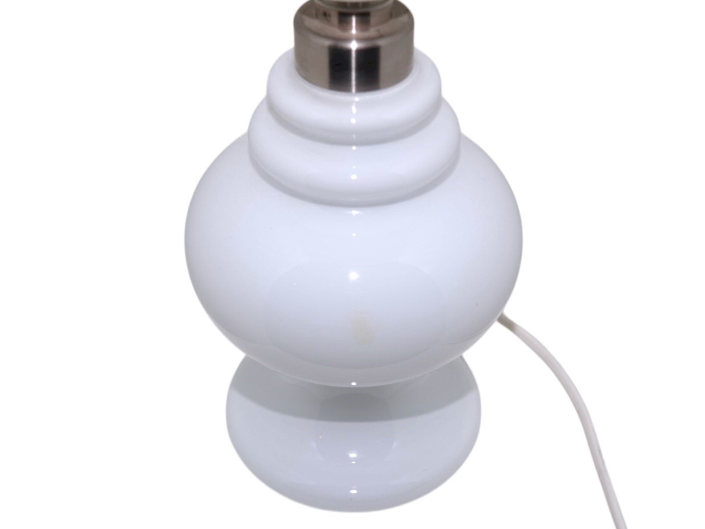 Beskrivelse: Holmegaard lille Monique bordlampe i hvidt opalglas.