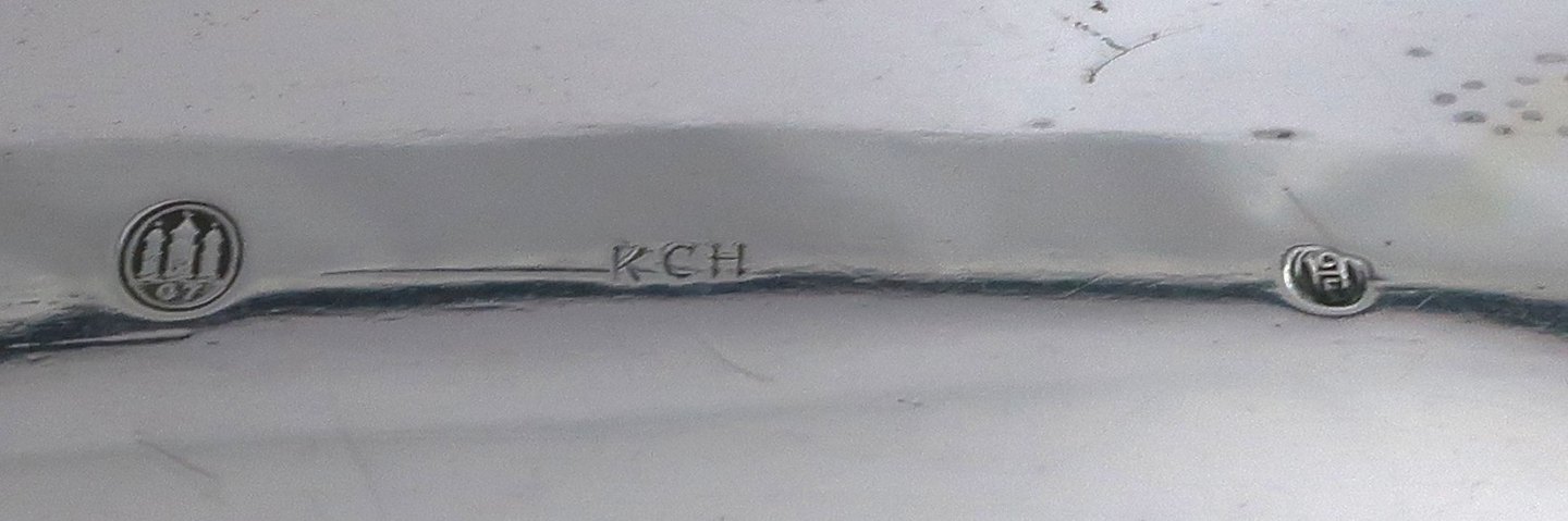Beskrivelse: K. C. Hermann, København. (KCH). Stor sølv jardiniere i art nouveau stil (830). Længde 45 cm. Bredde 23,5 cm. Højde 15 cm. Produceret 1907