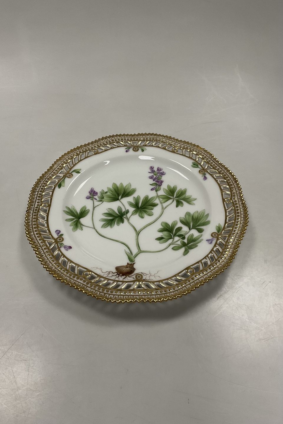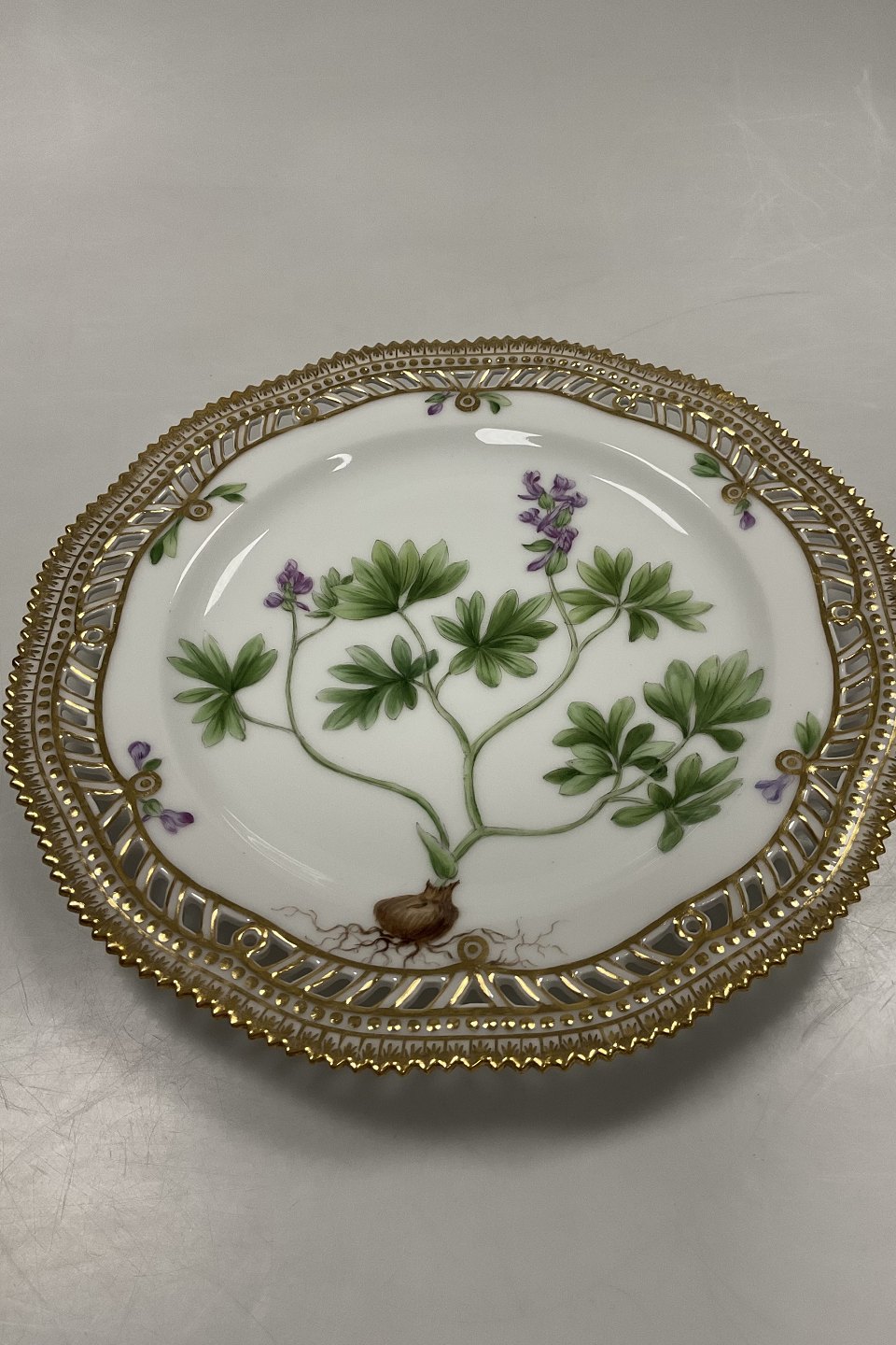 Beskrivelse: Royal Copenhagen Flora Danica Gennembrudt Frokosttallerken No 3554.