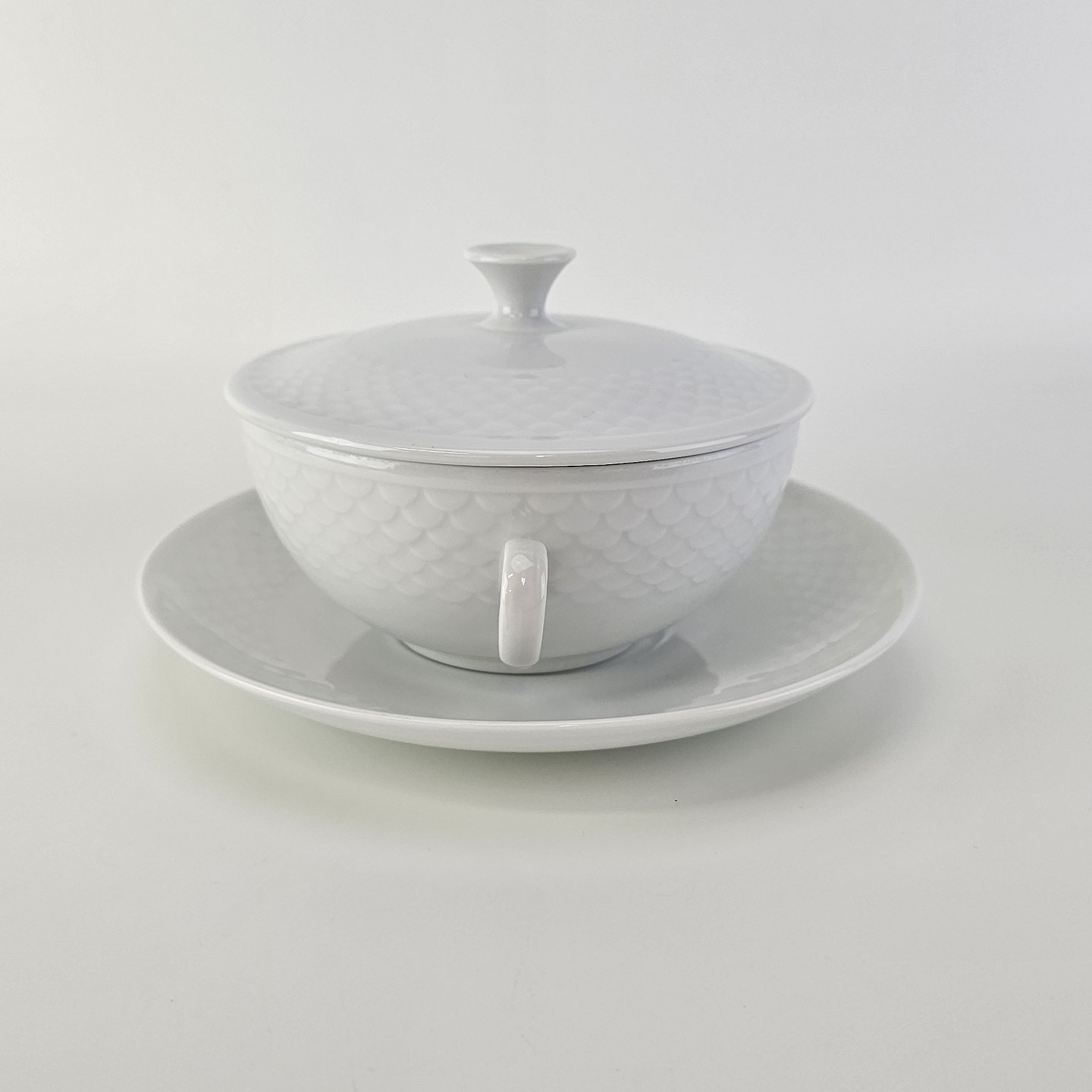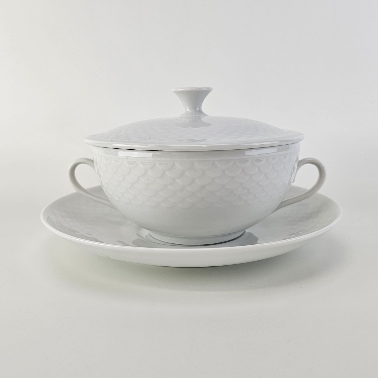 Beskrivelse: Boullionkop med låg og underkop fra stellet Elegance