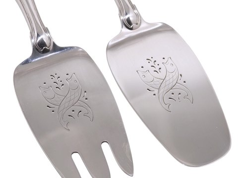 Description: Georg Jensen sterling silver Old Danish (Dobbeltriflet), large fish serving set.