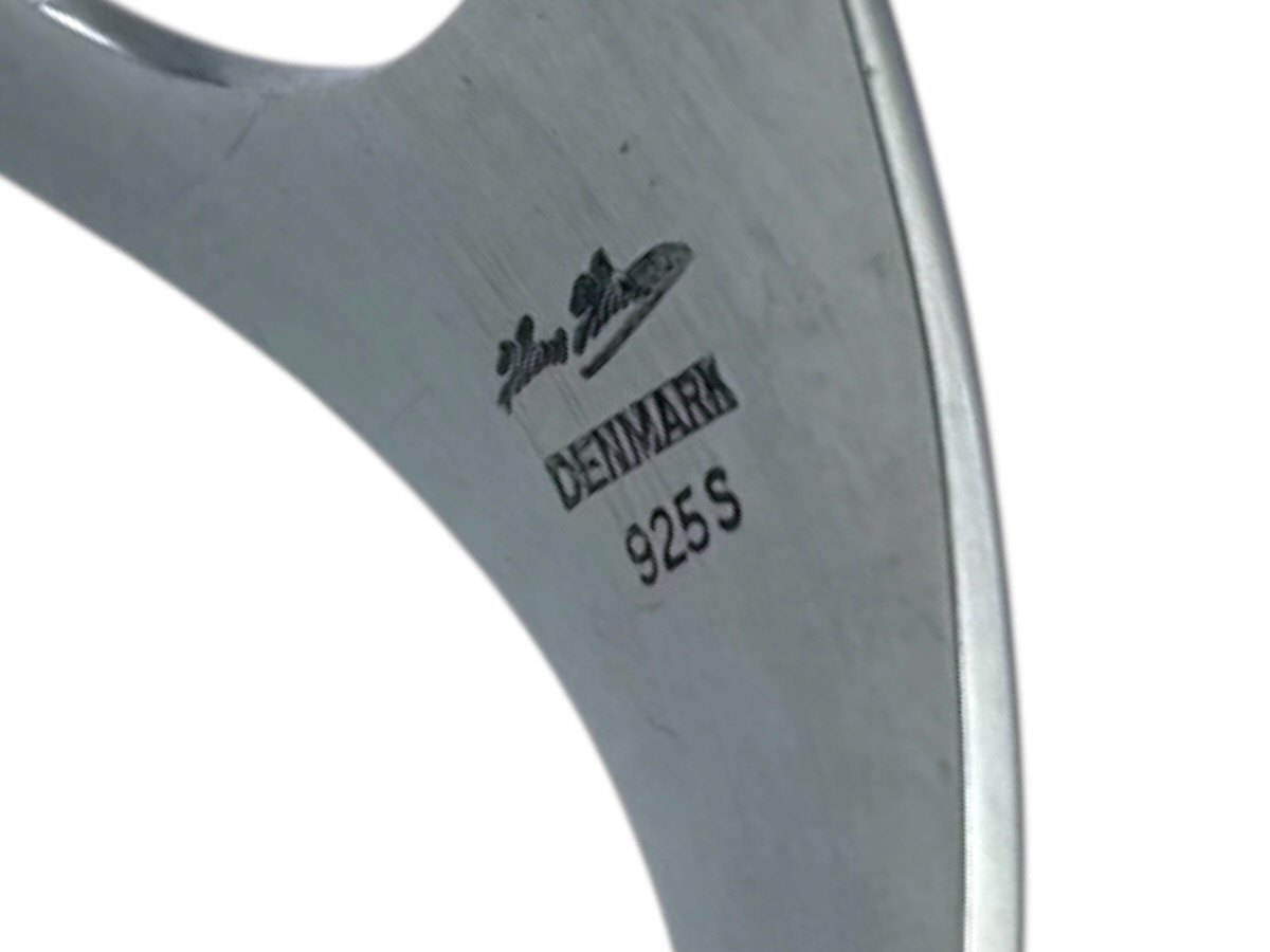 Beskrivelse: Hans Hansen sterlingsølv, armring i flot kraftig kvalitet. Fronten kan klikkes sammen.