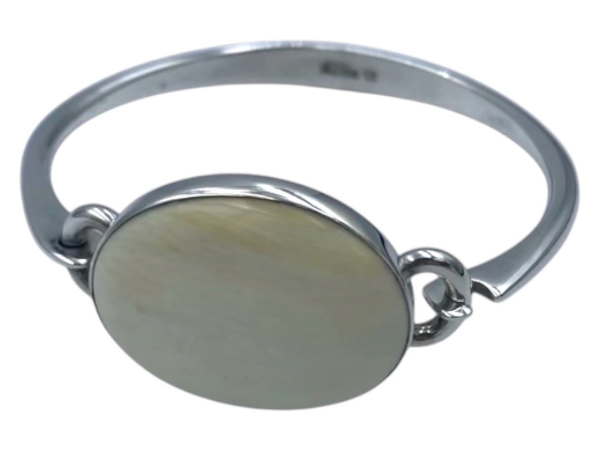 Beskrivelse: Niels Erik From sterlingsølv, moderne moderne armring med stor hvid stykke ben.