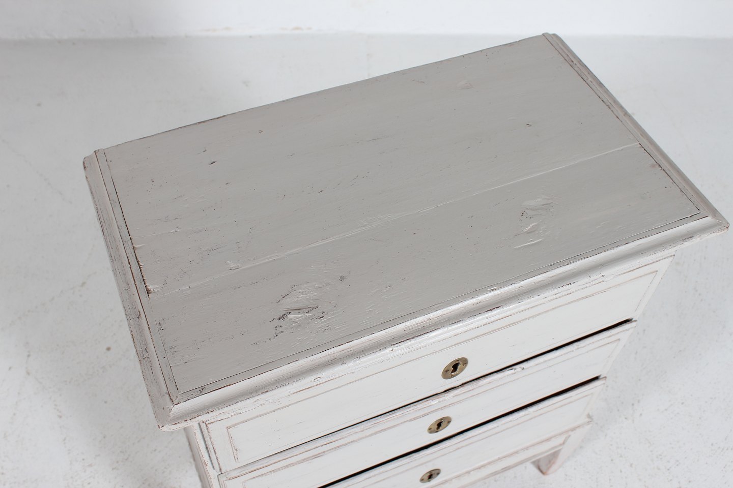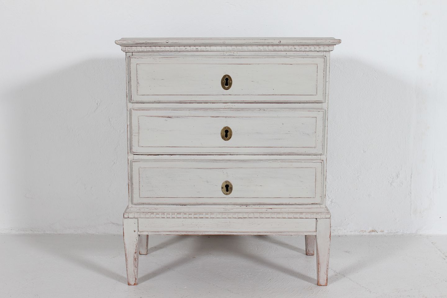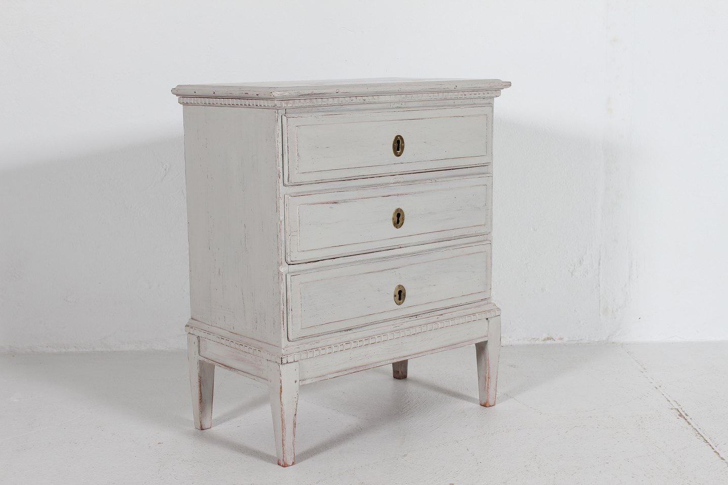 Lille rustik Louis Seize stil kommode med 3 skuffer