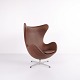 Beskrivelse: Arne Jacobsen Ægget, model 3316 fra Fritz Hansen. Nypolstret i brunt læder. Et dansk designikon fra 1958.