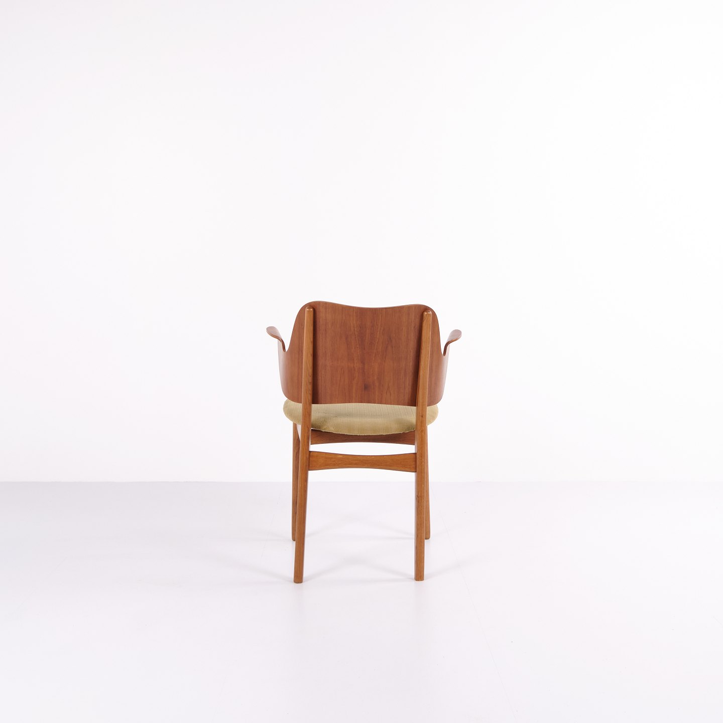 Beskrivelse: Hans Olsen armstol, model 107, fra 1960’erne. Eg og teaktræ med original polstring. Klassisk dansk design.