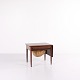 Beskrivelse: Foldbart sybord designet af Johannes Andersen og fremstillet af Silkeborg Møbelfabrik i 1960’erne. Bordet er udført i palisander og har både skuffe og udklappelig bordplade, hvilket gør det særligt funktionelt til opbevaring og arbejde.