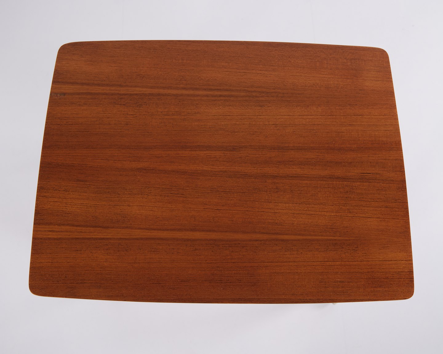 Beskrivelse: Sidebord fra 1960’erne i teaktræ med hylde og hjul. Klassisk dansk design.