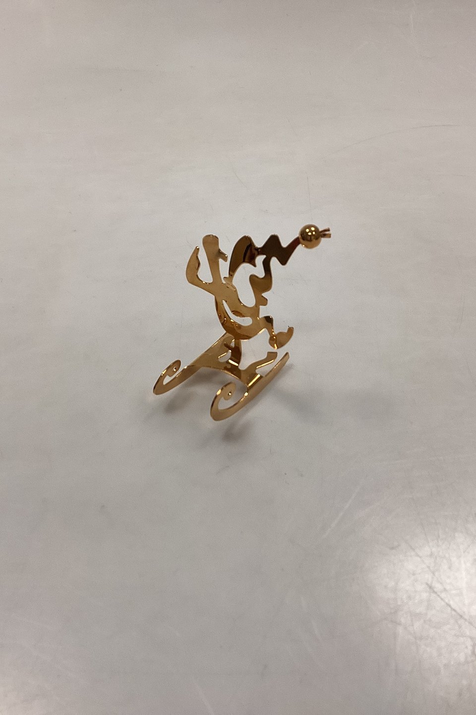 Beskrivelse: Georg Jensen Christmas Classics Julepynt - Nisse på Kælk. Designet af Leo Griffin. Stål forgyldt med 24-karat guld.