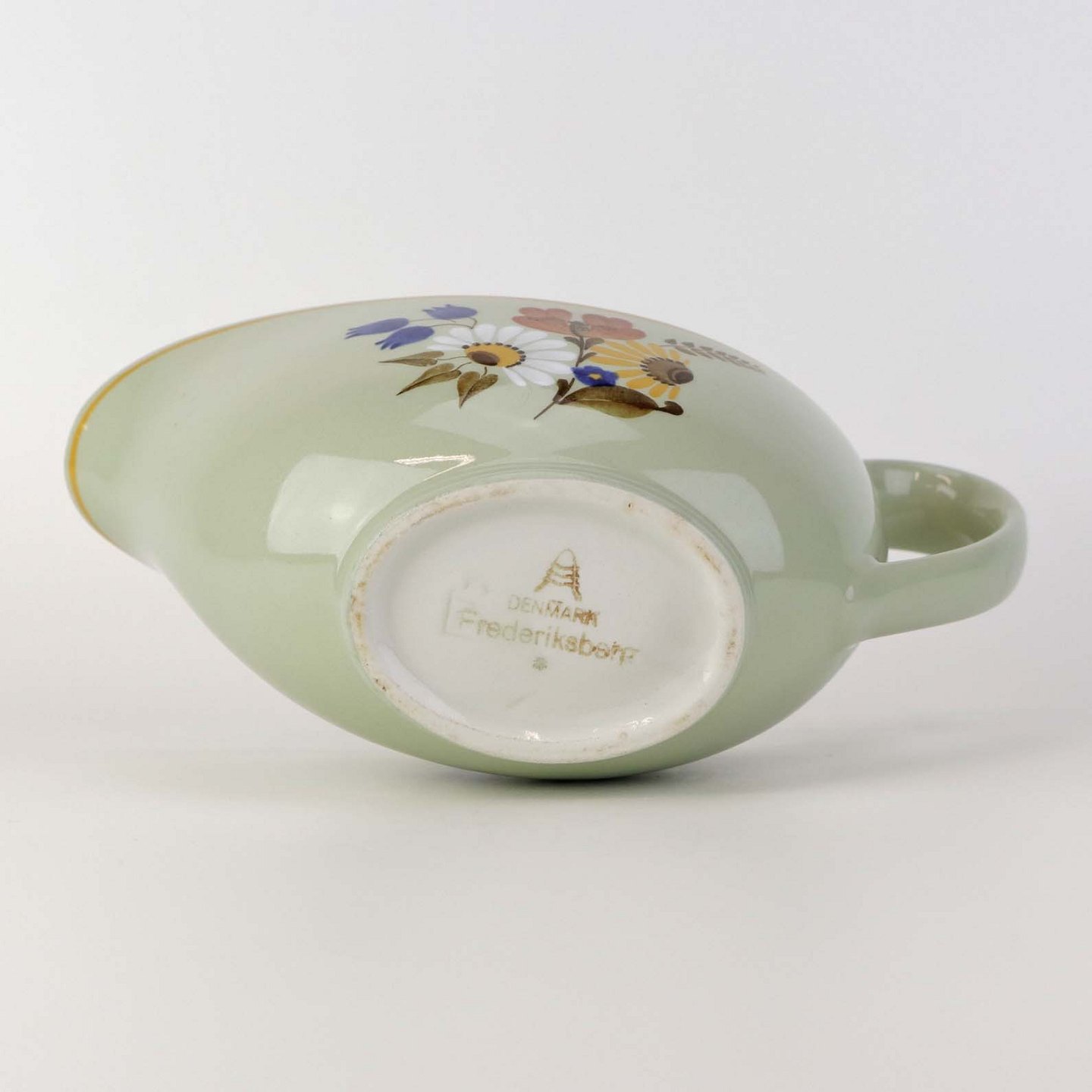 Beskrivelse: Sovsekande i fajance fra stellet Frederiksberg.
