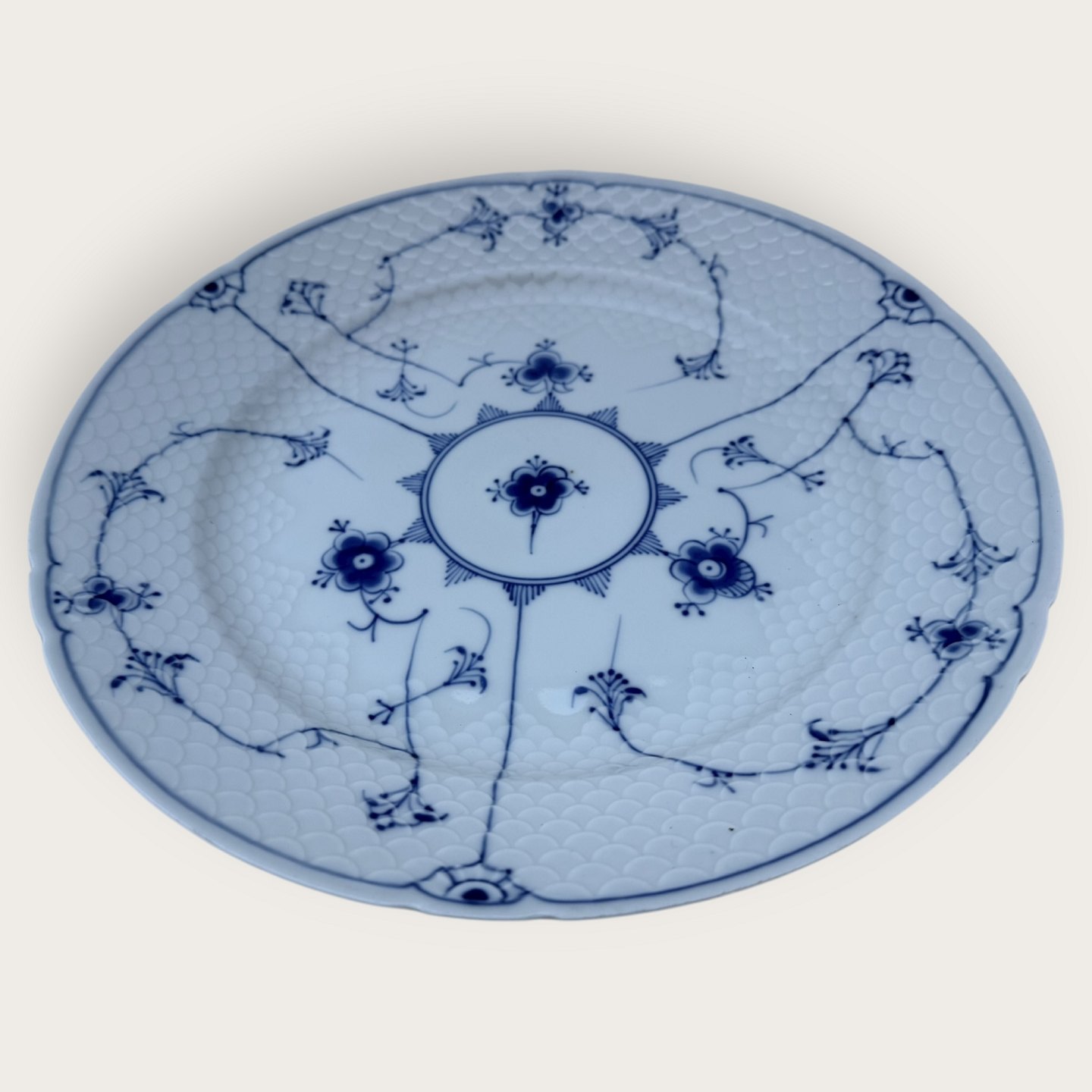 Beskrivelse: Bing & Grøndahl, Blåmalet / Musselmalet, Rundt fad #376, 32,5cm i diameter, 3.sortering *Pæn stand*