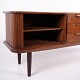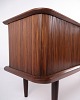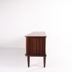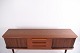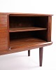 Beskrivelse: Skænk fra 1960’erne, udført i teaktræ med tre centrale skuffer og jalousilåger i siderne.