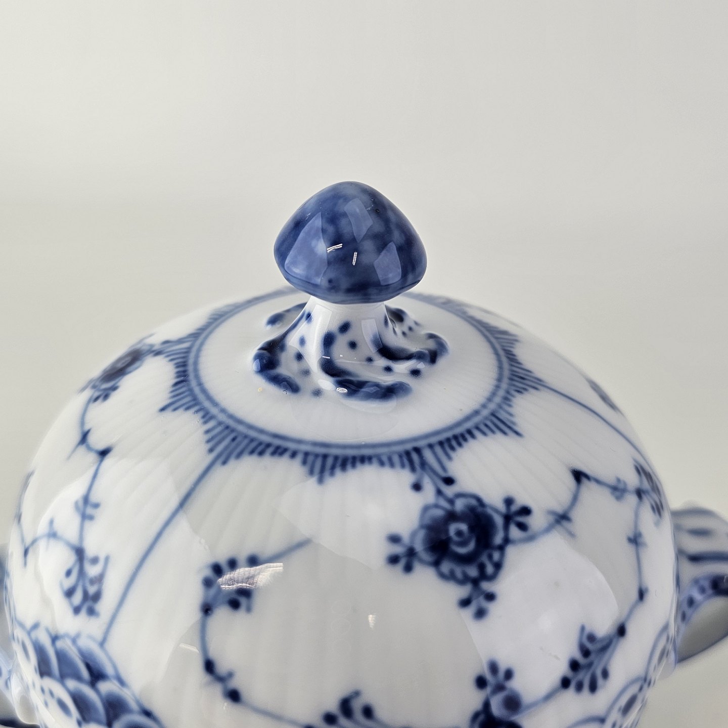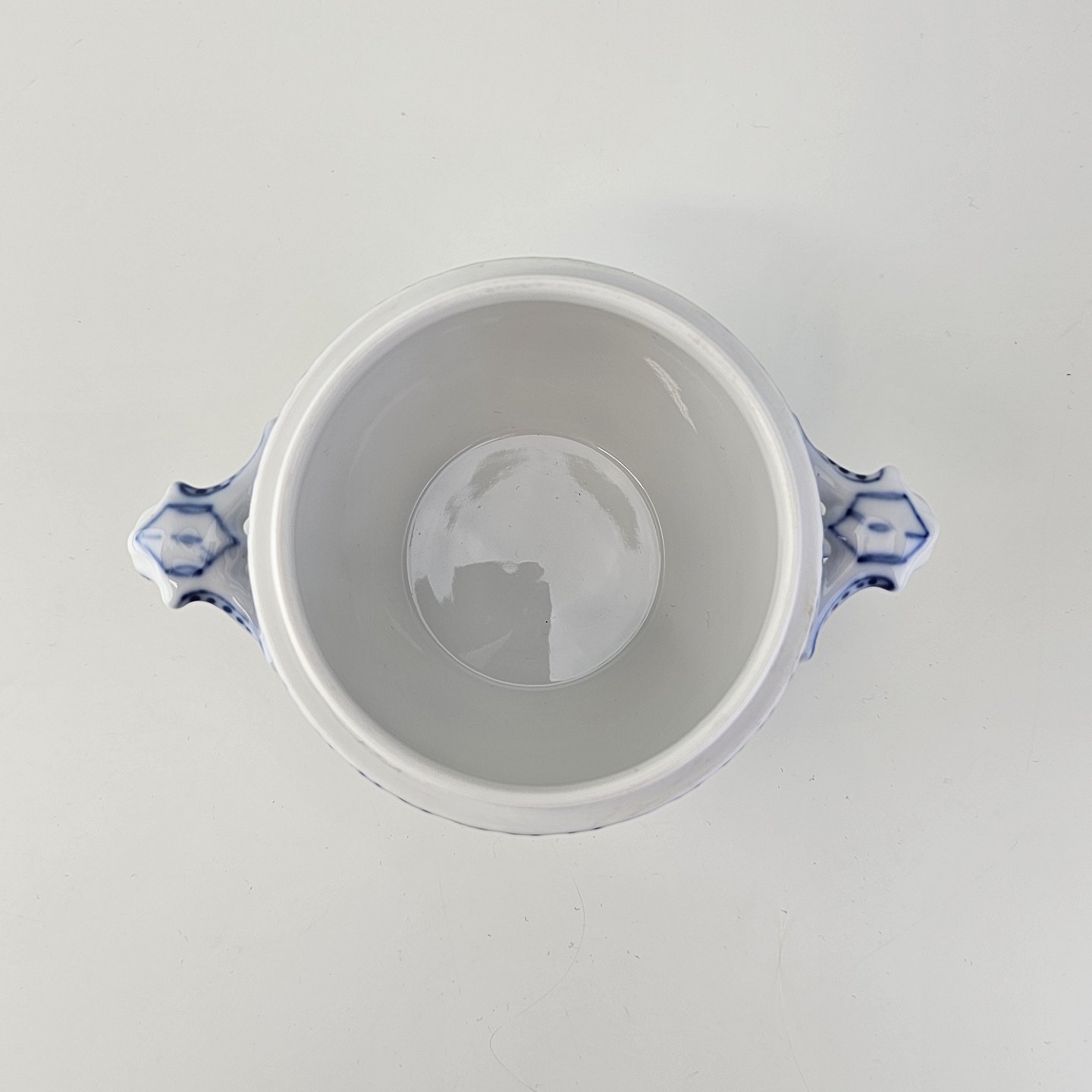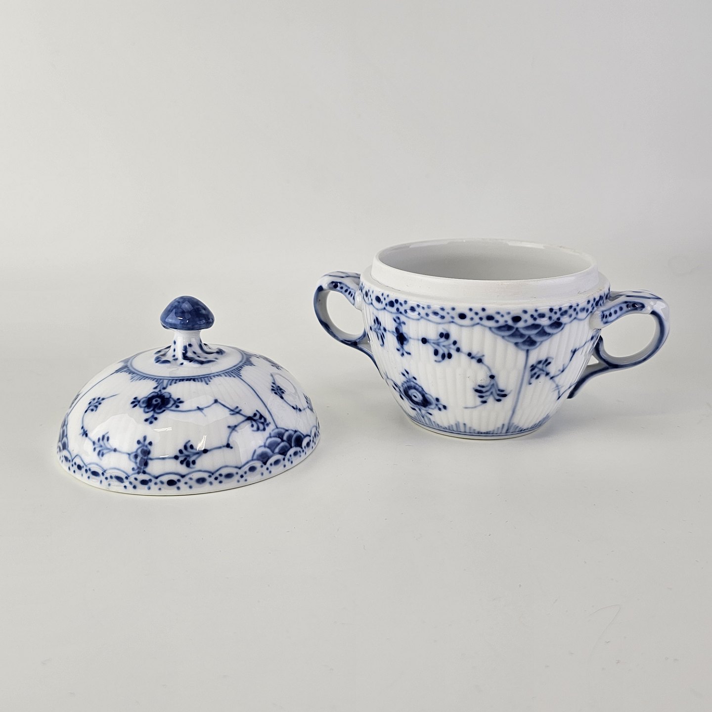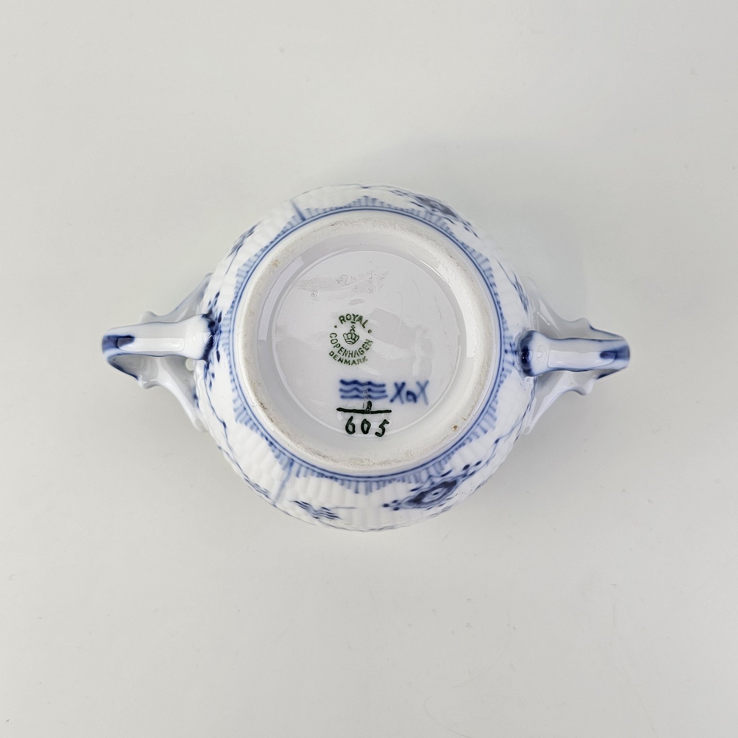 Beskrivelse: Sukkerskål i kongeligt porcelæn fra stellet Musselmalet Halvblonde