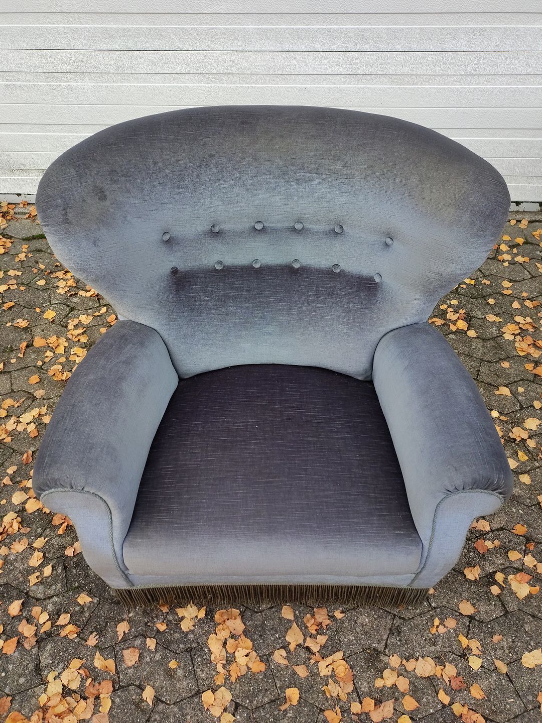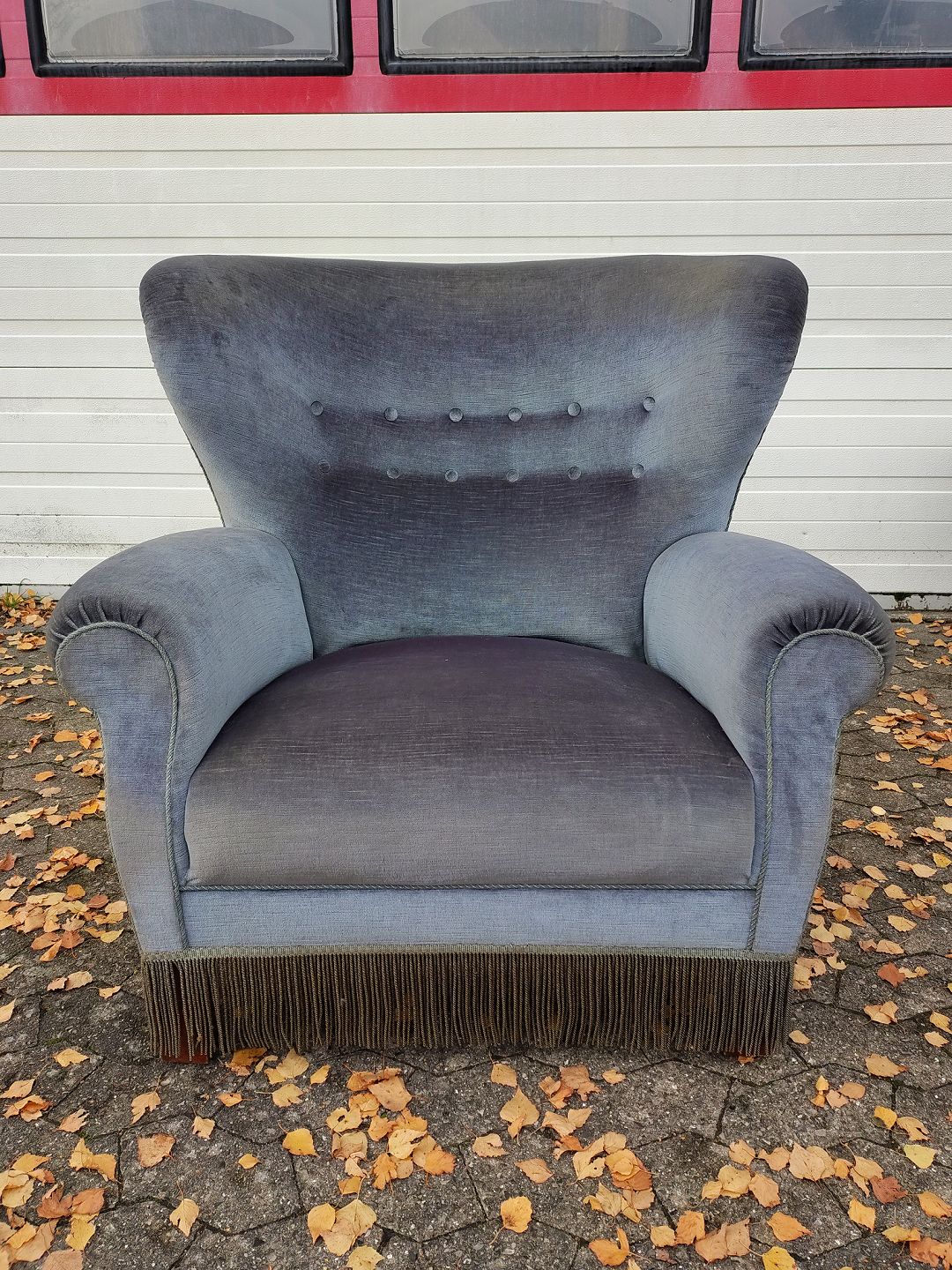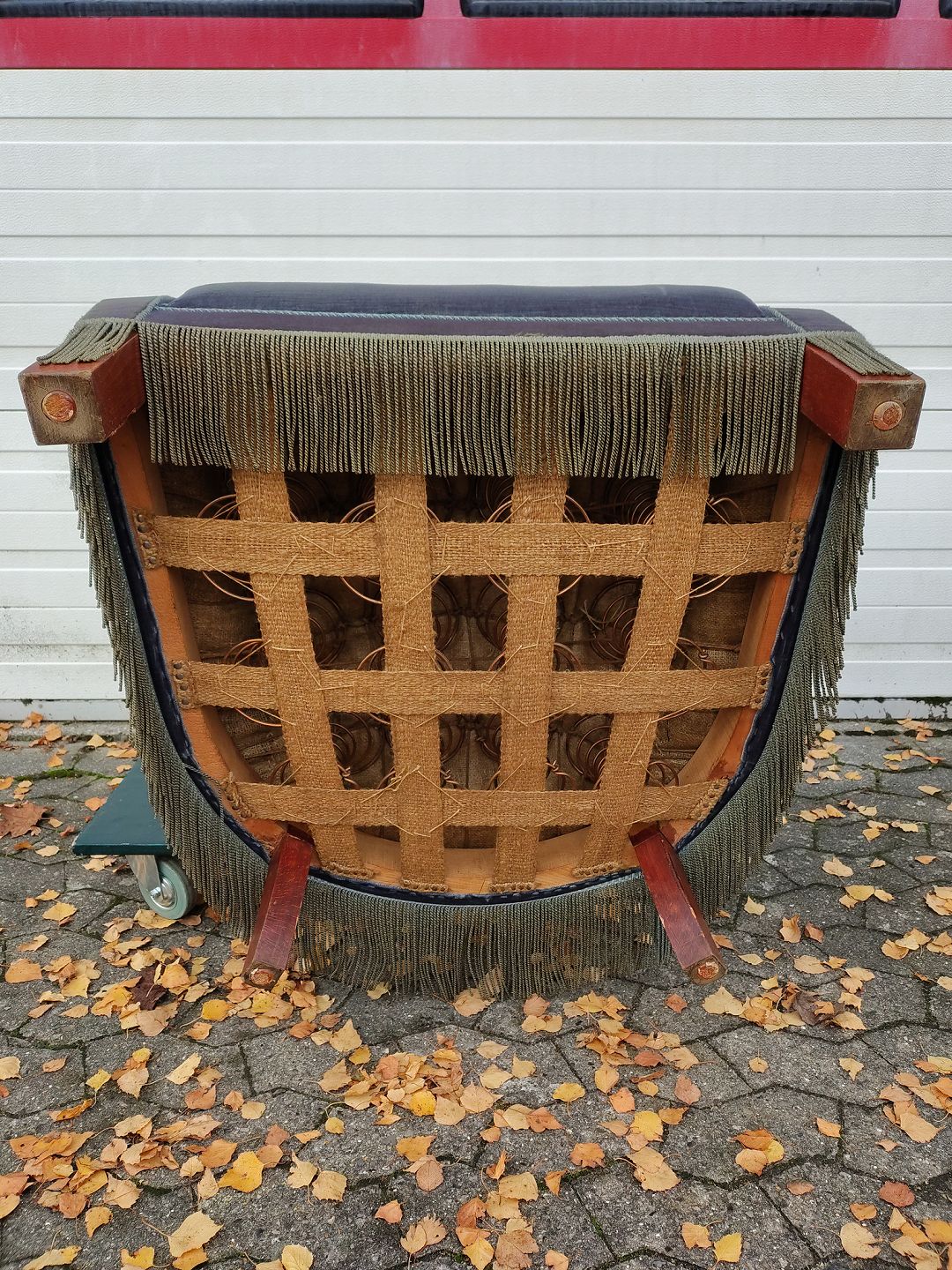 Beskrivelse: Lænestol med velourbetræk, fra 1930erne.