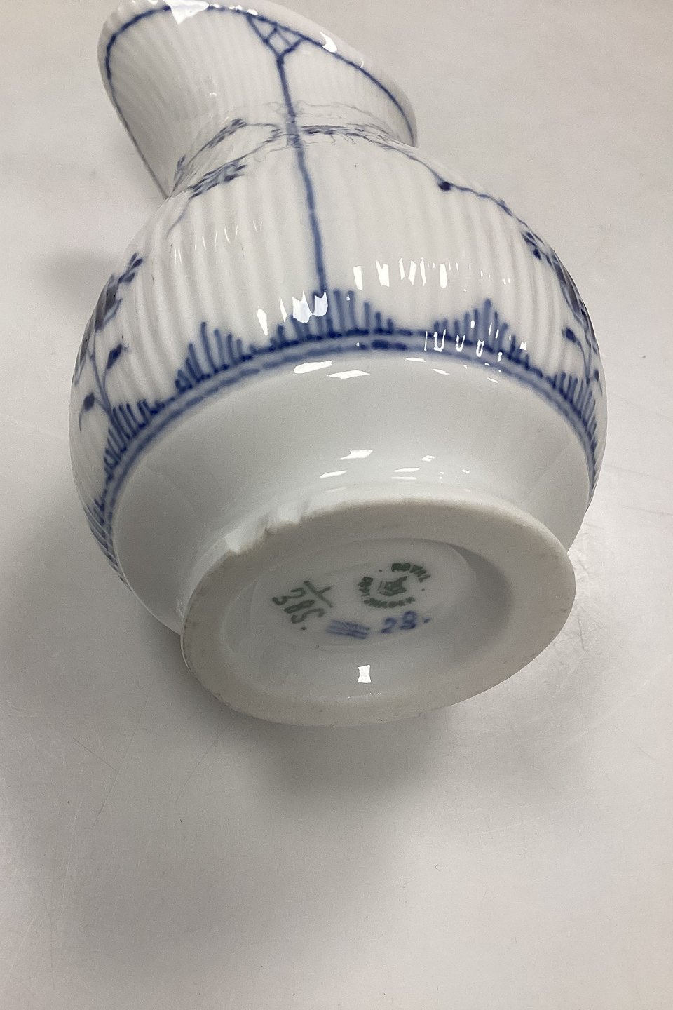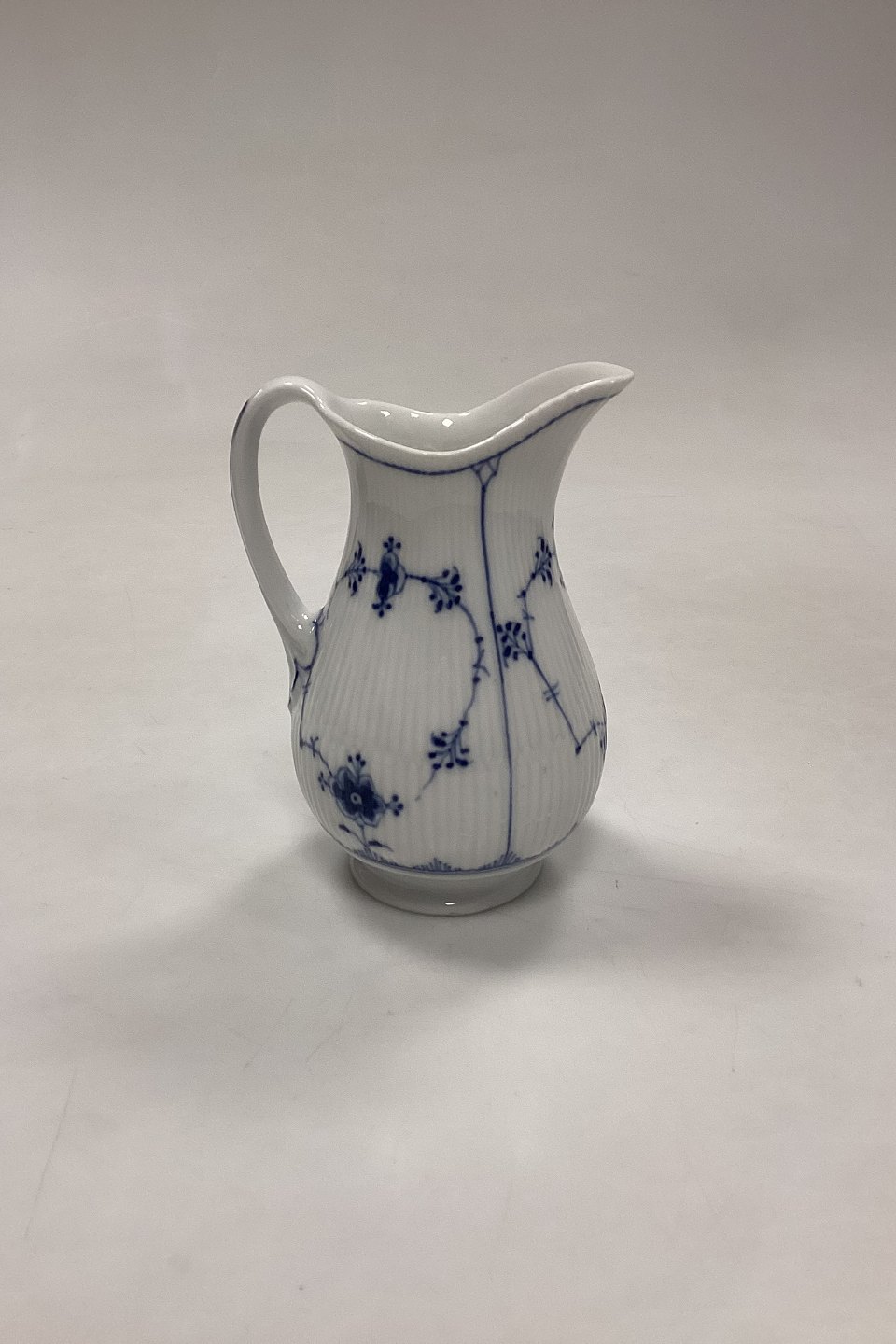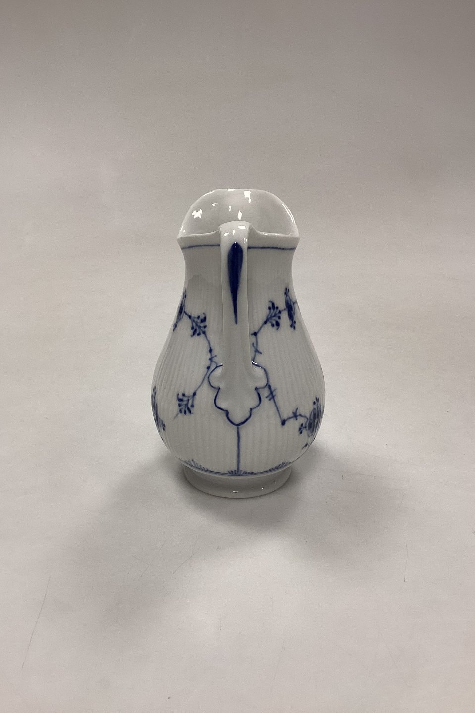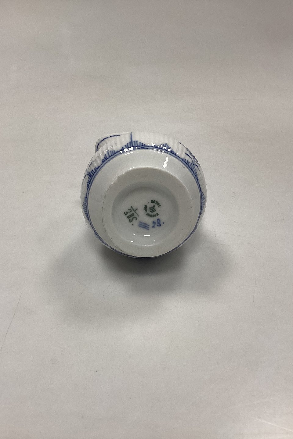 Description: Royal Copenhagen Blue Fluted Plain Cream Jug No. 385. Has small chips at the bottom, see photo.