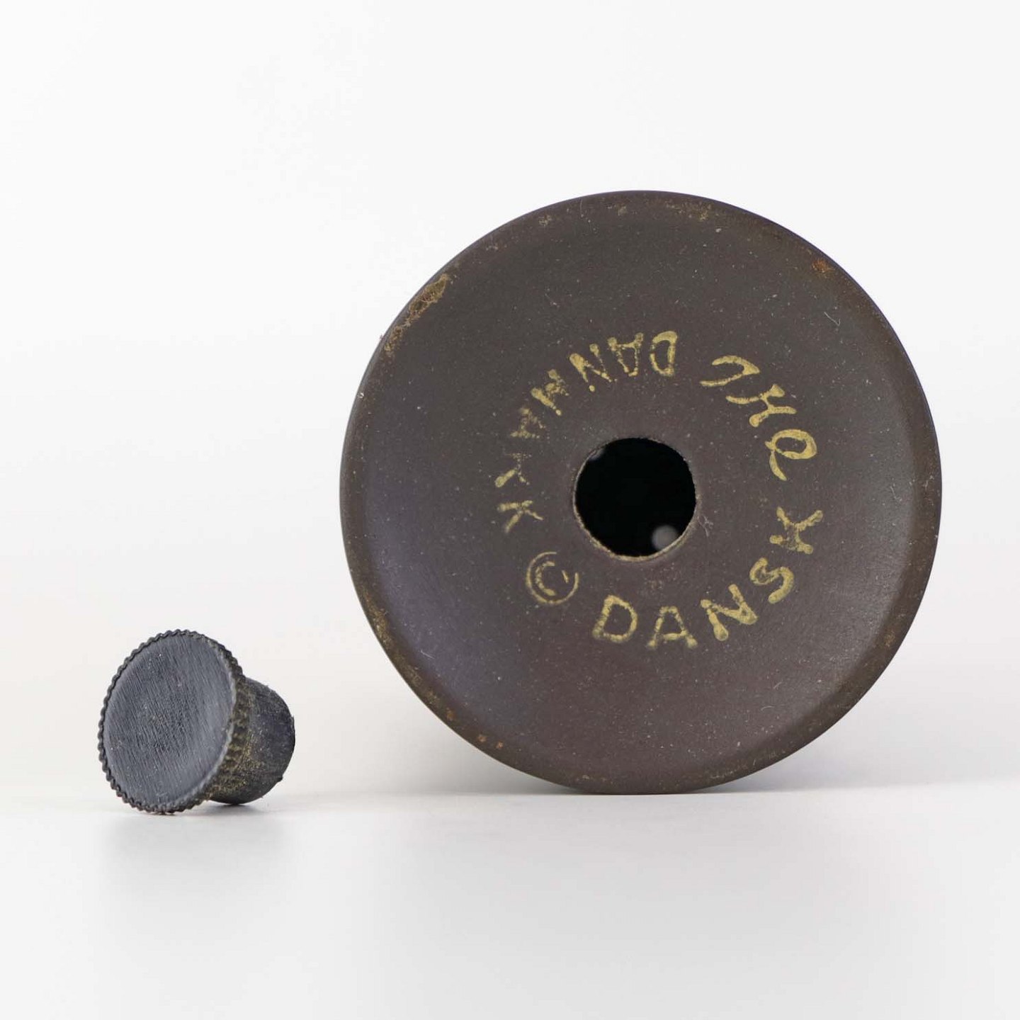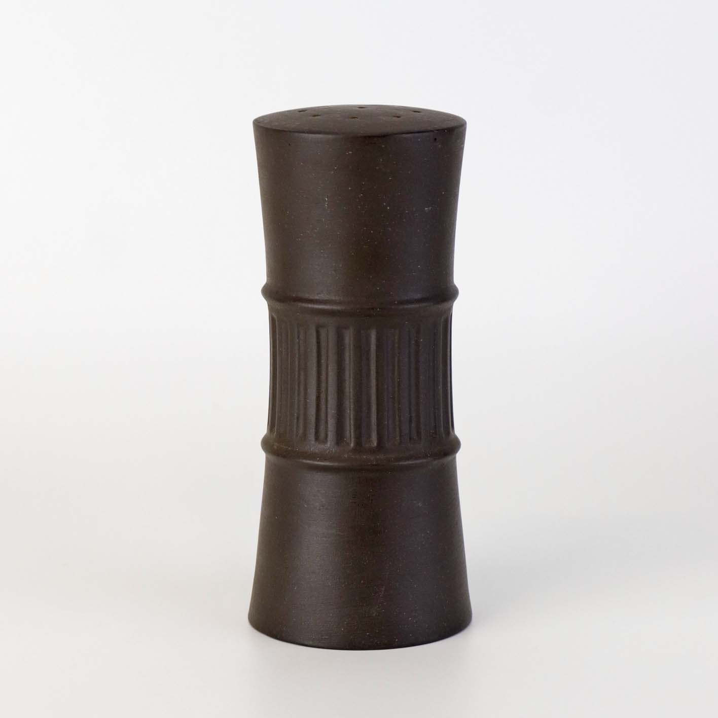 Beskrivelse: Bøsse til peber i stentøj fra stellet Flamestone