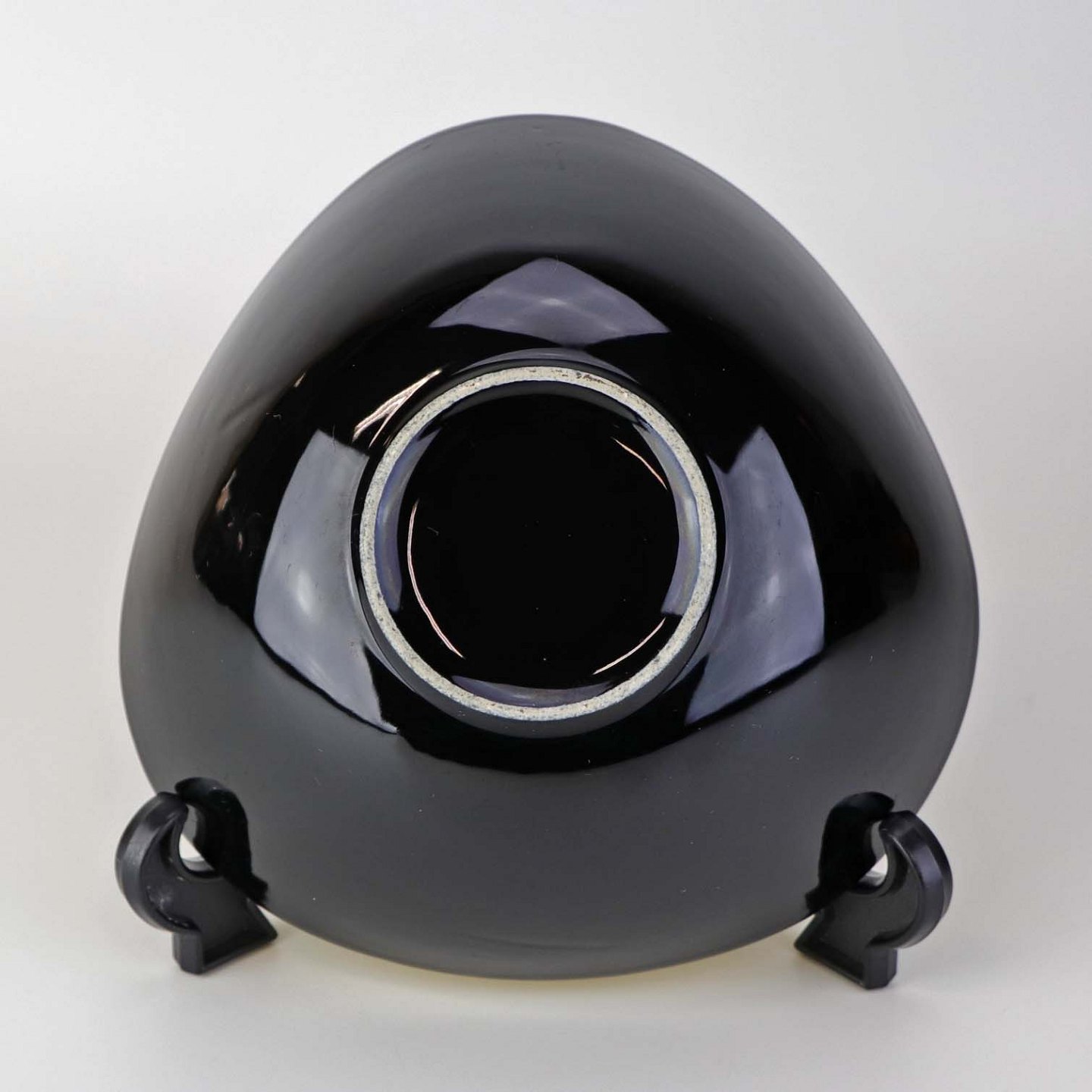 Beskrivelse: Trekantet skål i fajance fra stellet Congo