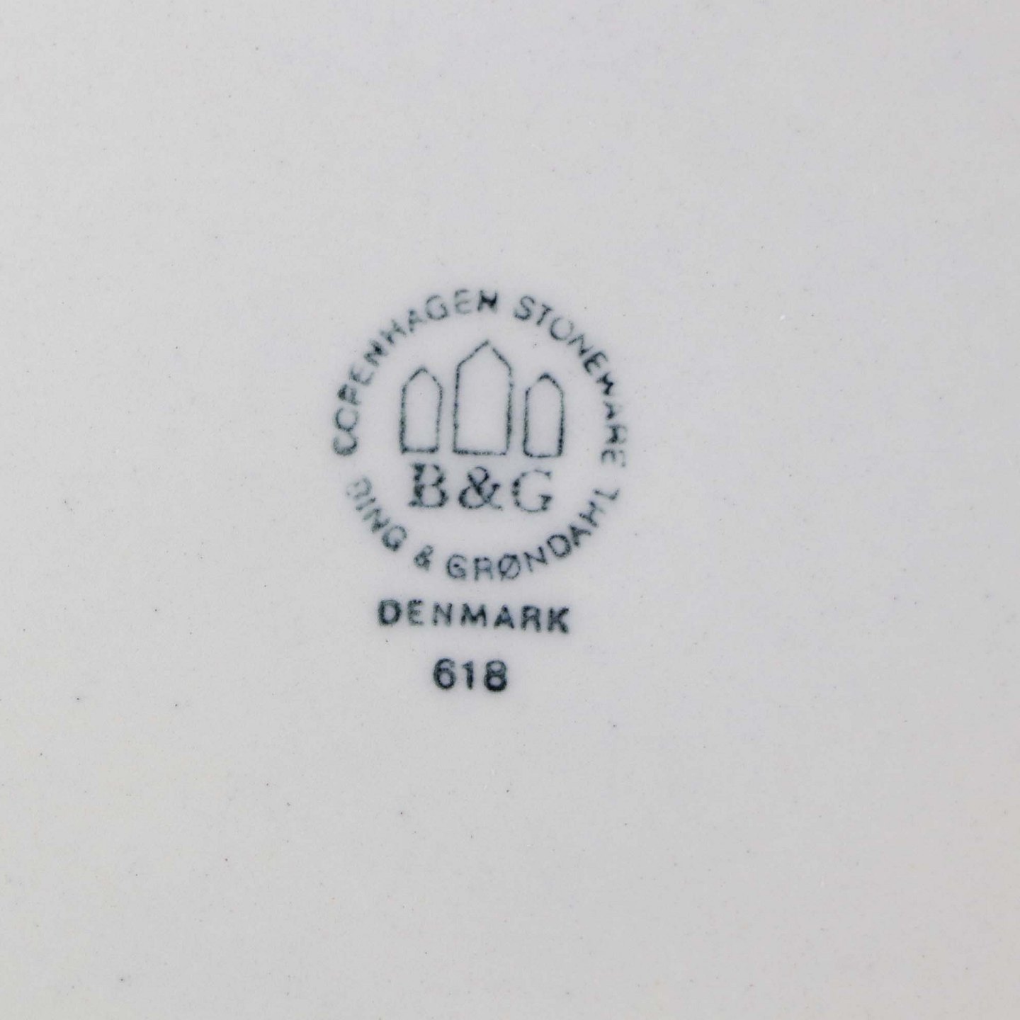 Beskrivelse: Flad frokosttallerken i stentøj fra os ukendt stel Nr. 618
