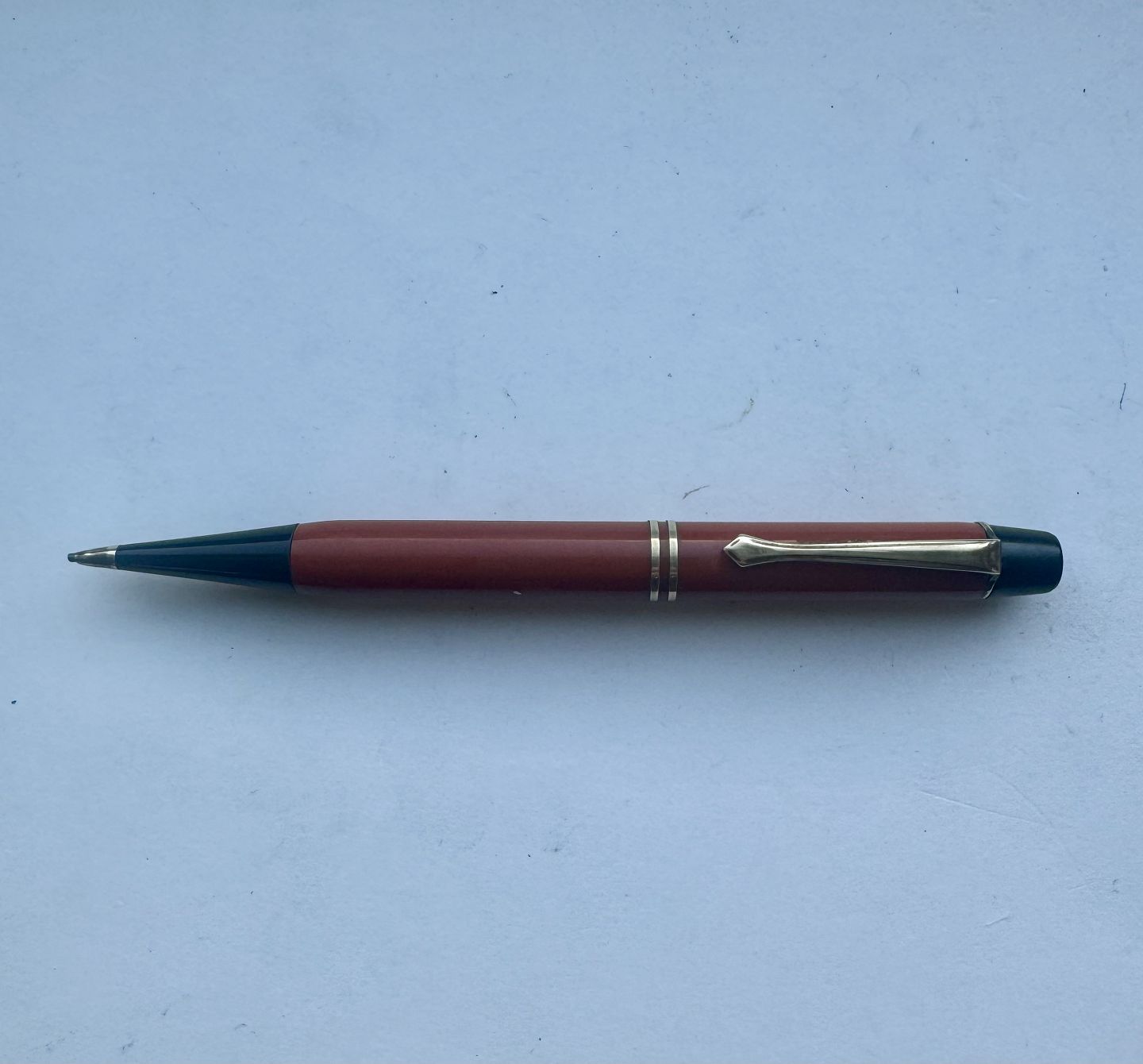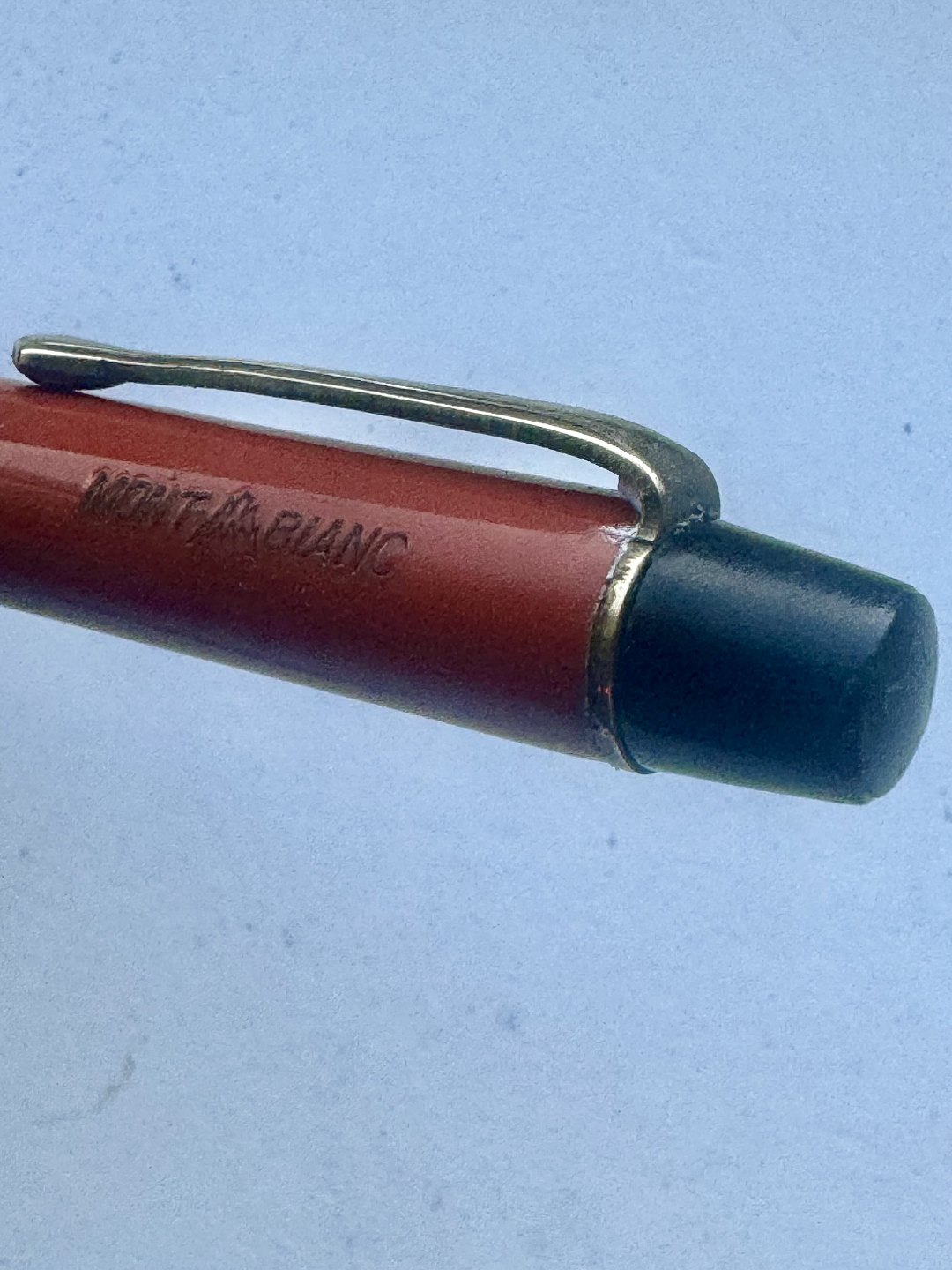 Beskrivelse: Slank vintage koralrød Montblanc 33 skrueblyant fra omkring 1950. I fin stand uden skader. Klar til at blive brugt. 12,8 cm