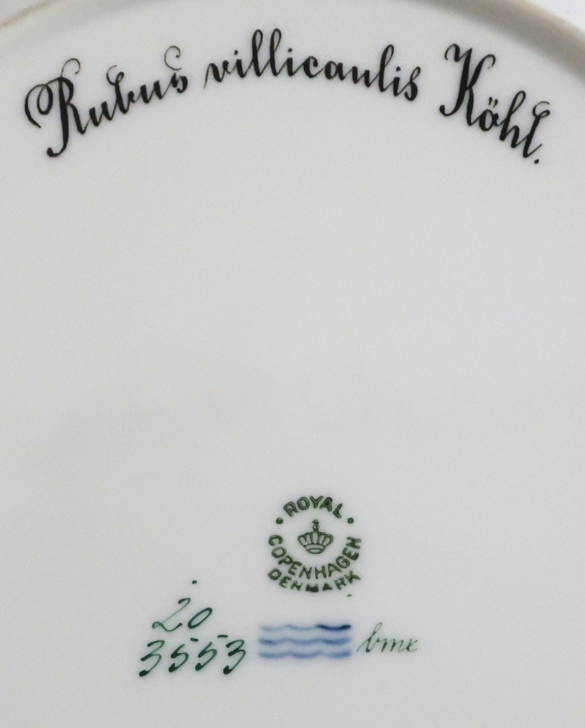 Description: Royal Copenhagen. Flora Danica plate w. open-work border. Diameter 25 cm. Model 3553. (1 quality). Rubus villicanlis Köhl