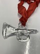 Beskrivelse: Super flot juleophæng i glas, designet af Bertil Vallien for Kosta Boda. Hæng den søde trompet på juletræet, en gren, i vinduet eller ned fra loftet. Den fremstår i flot og hel stand.