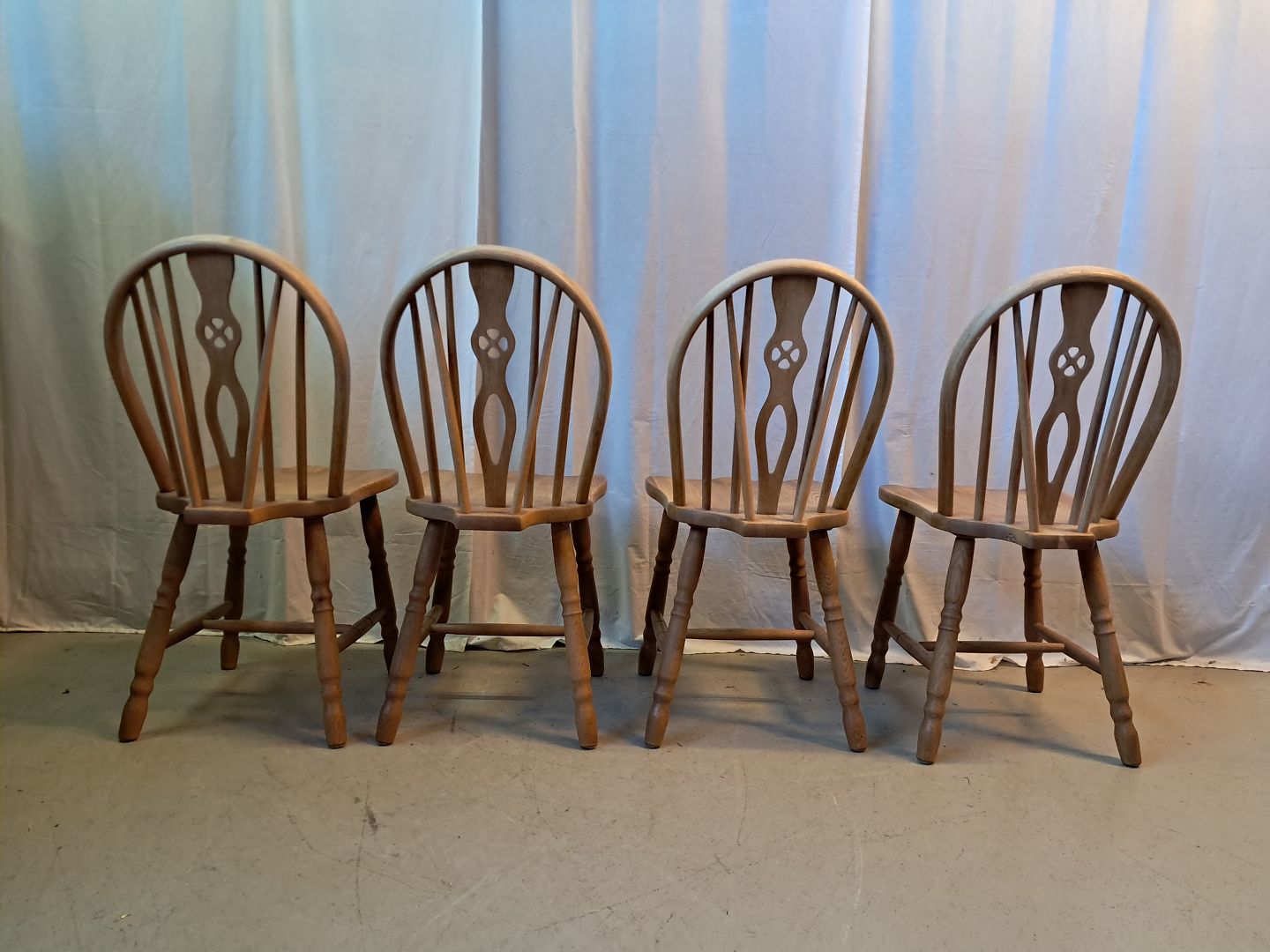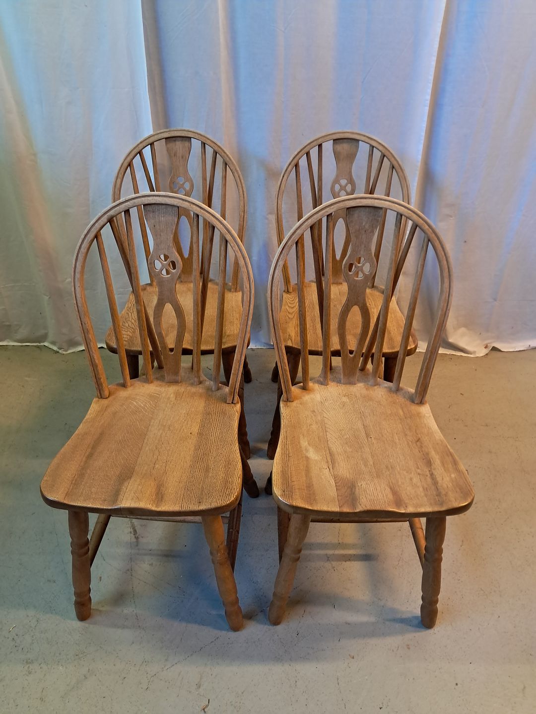 Beskrivelse: 4 Winsor stole i massivt egetræ, fra 1970erne.