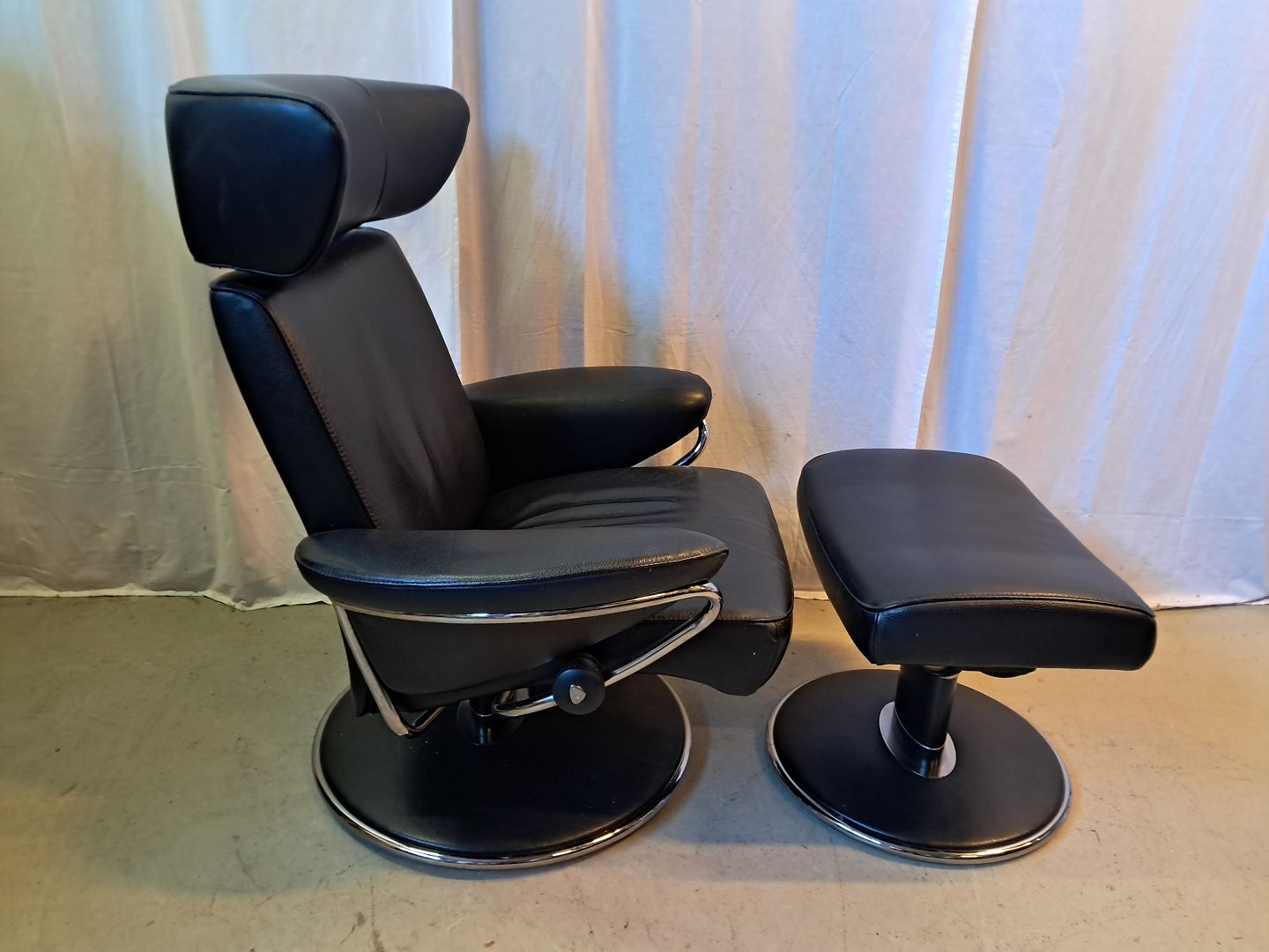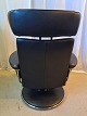 Beskrivelse: Stressless model Jazz læder lænestol med fodskammel, fra 2010erne.