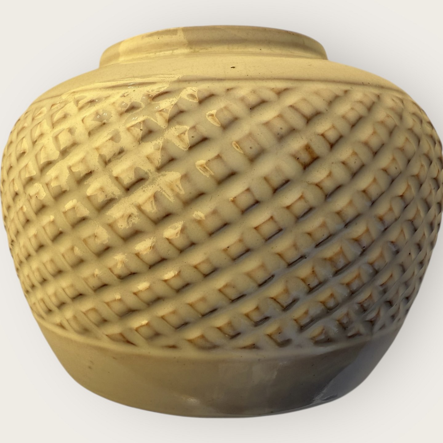 Beskrivelse: Herne Nielsen, keramik vase i ternet hvidt mønster, #322, Diameter ca. 15cm, højde 10cm *fin stand*