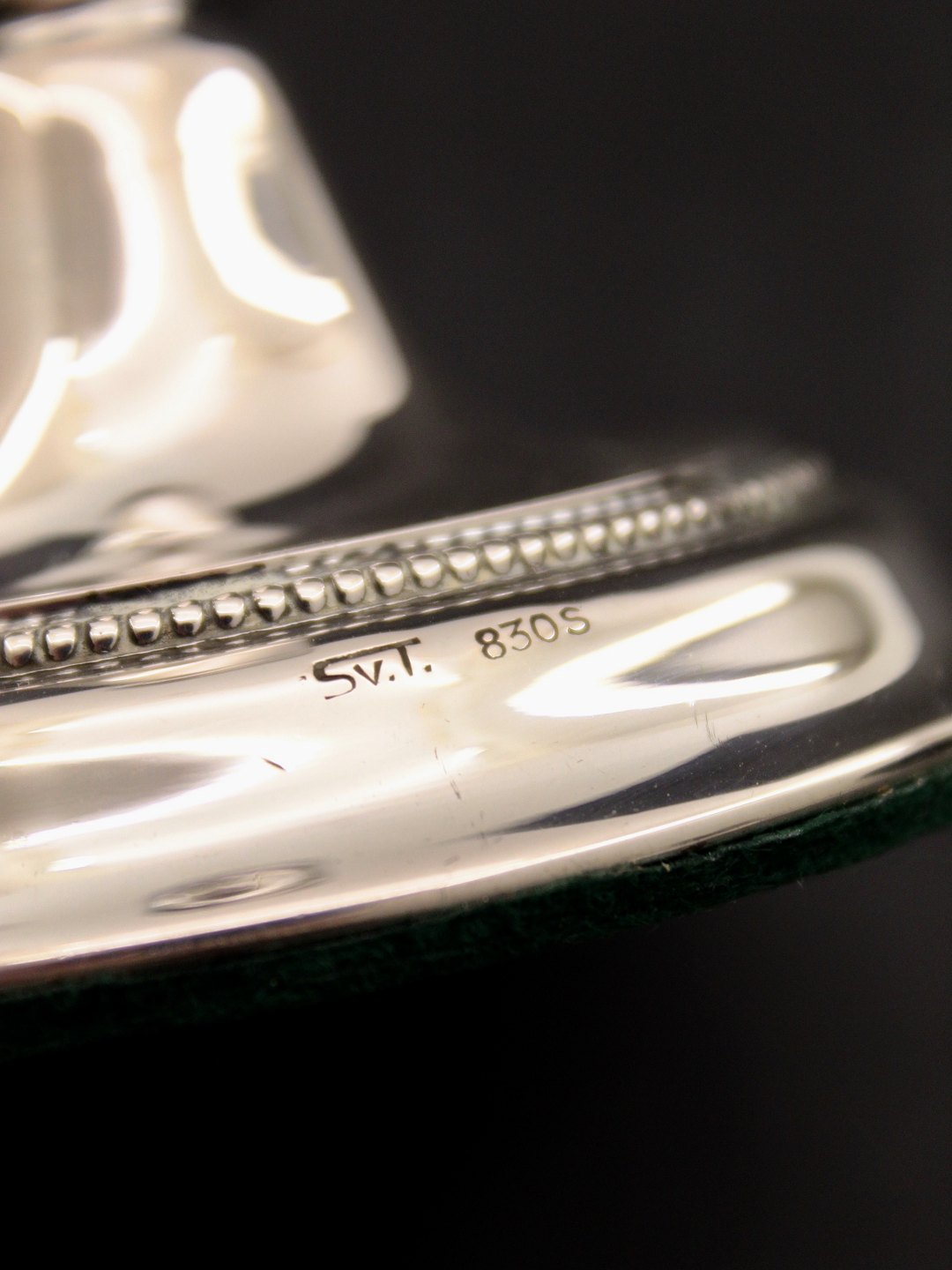 : 830 sølv lysestager 17,5 cm. fra sølvsmed SV. Toxværd København emne nr. 626479