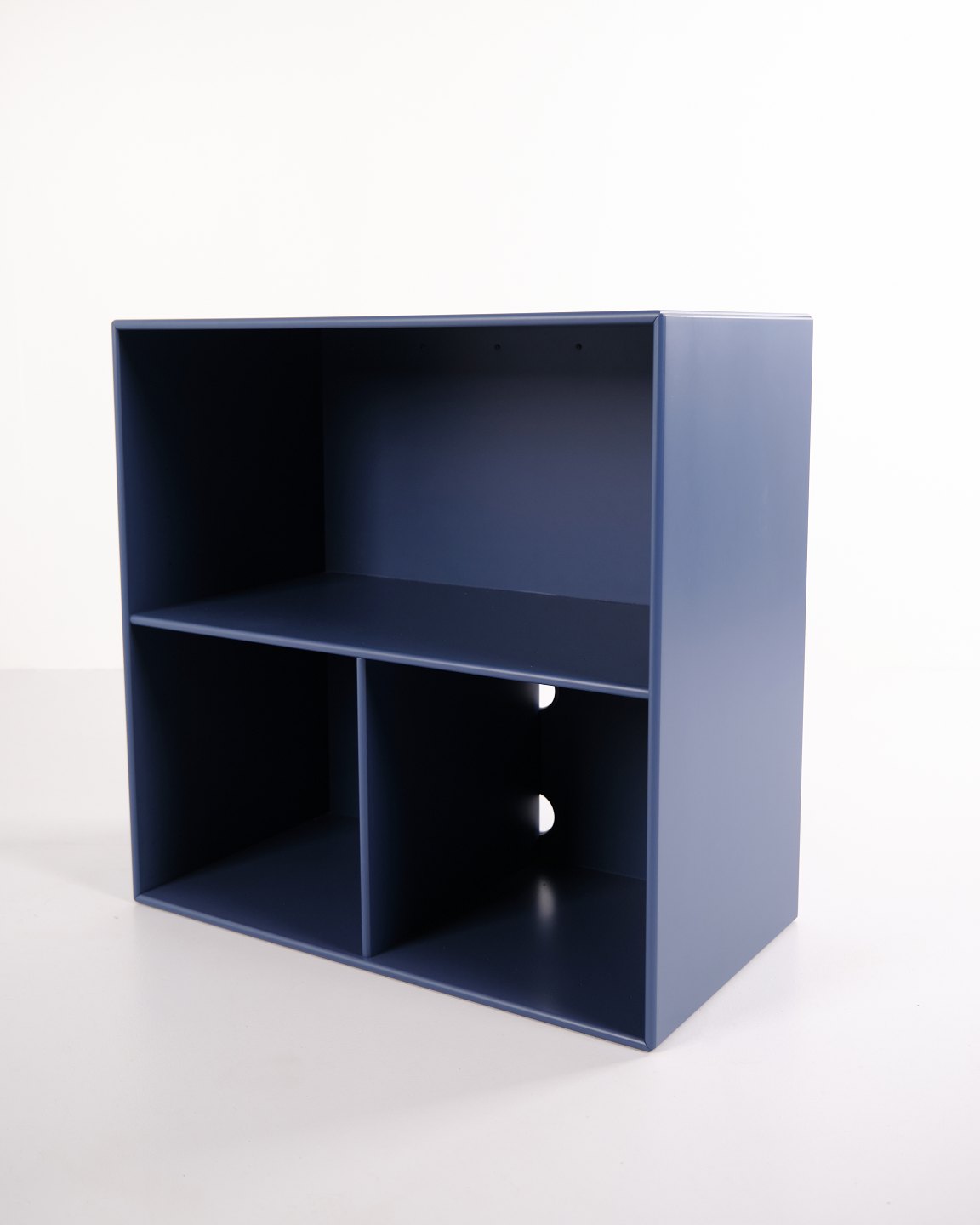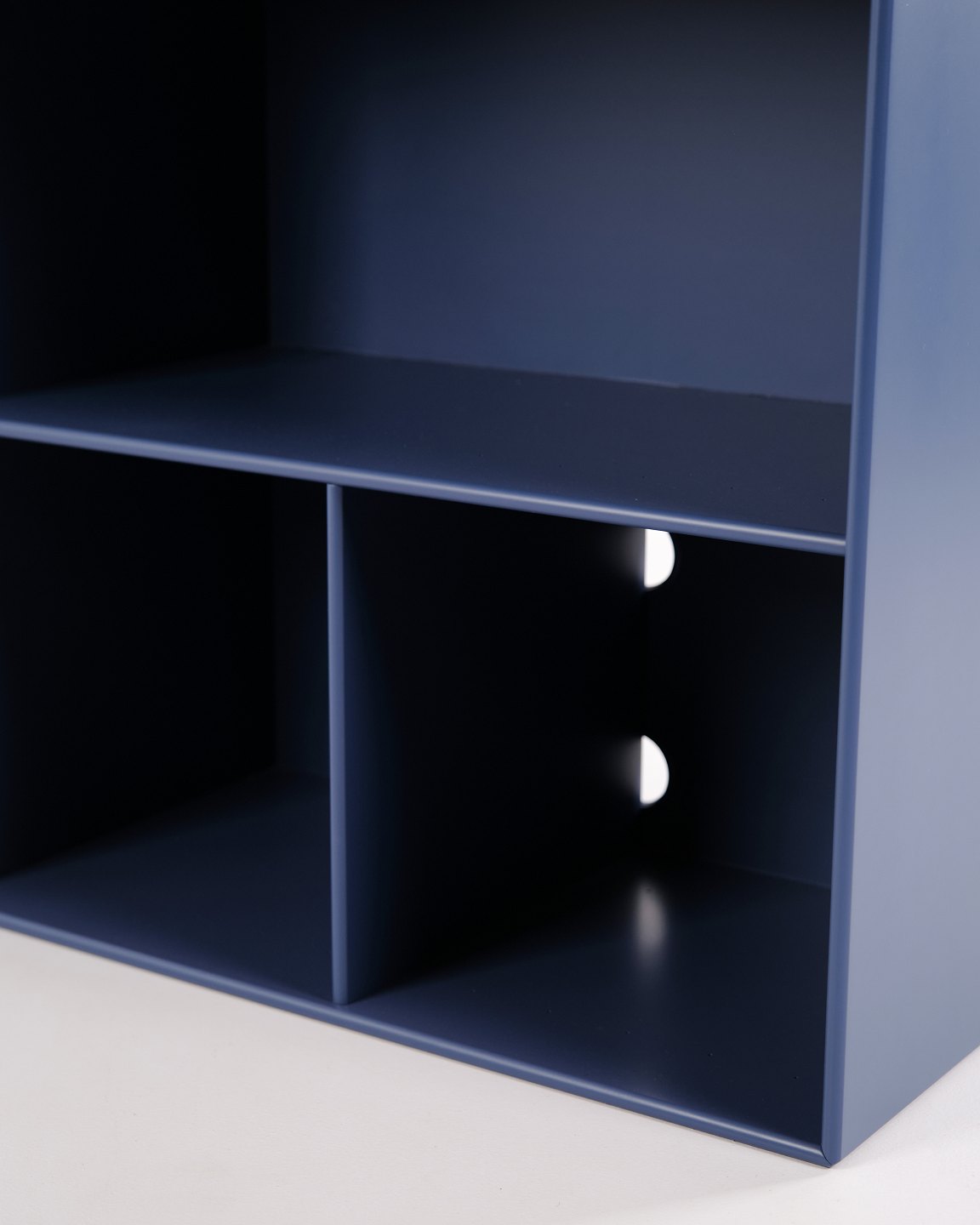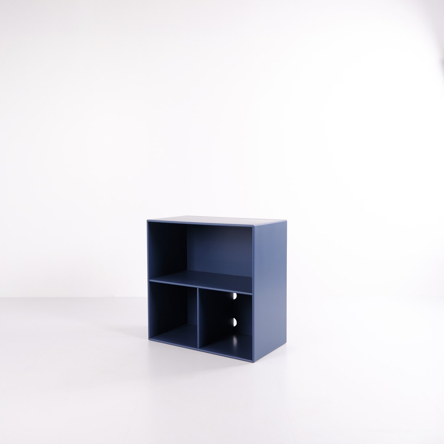 Beskrivelse: Montana reol i blå. Udstyret med tre åbne hylder, ideel til opbevaring eller udstilling i stue, kontor eller entré. Klassisk Montana-modul med enkel opbygning og høj funktionalitet.