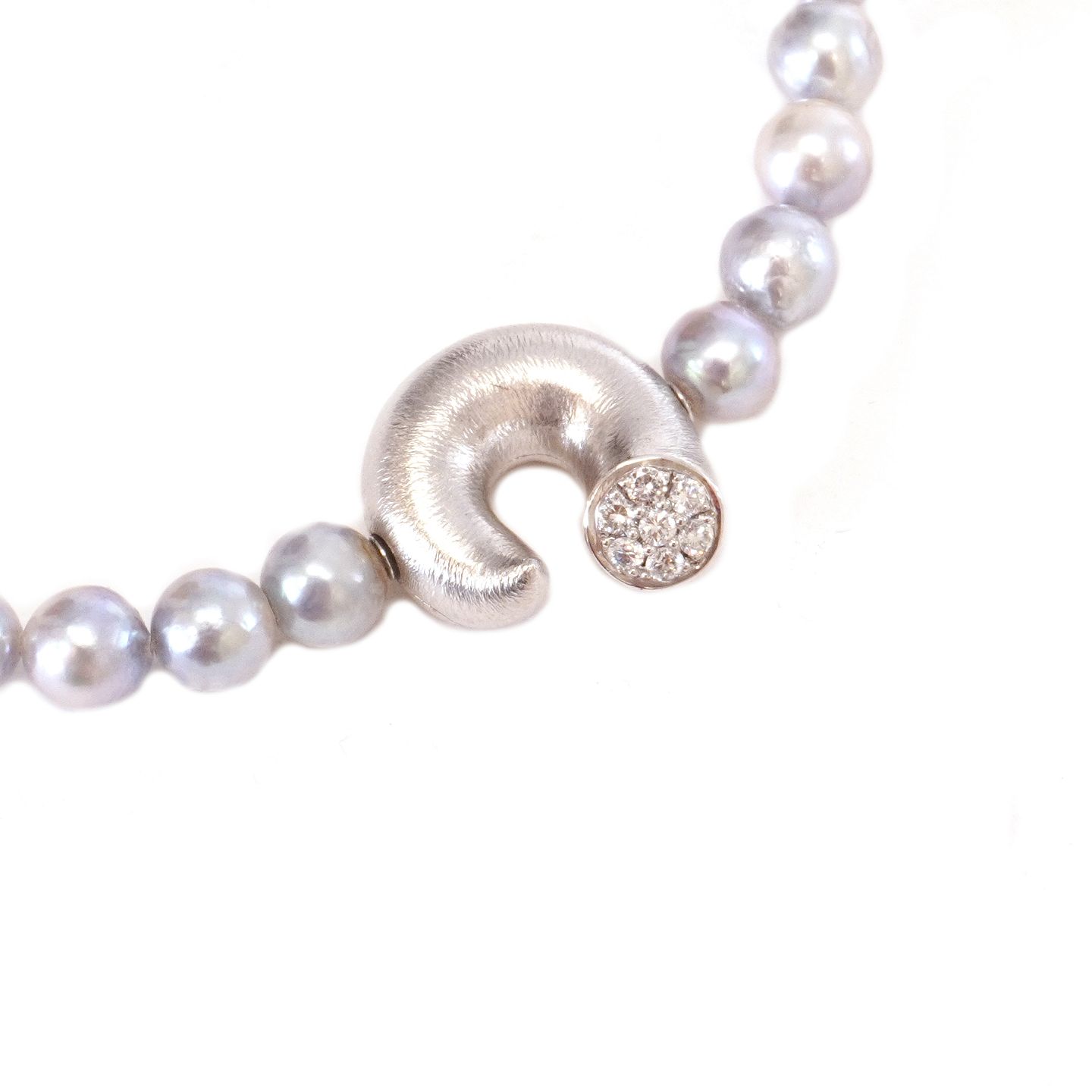 Beskrivelse: Ole Lynggaard 14kt hvidgulds lås "Optimisten" med brillanter og tilhørende kulturperlekæde