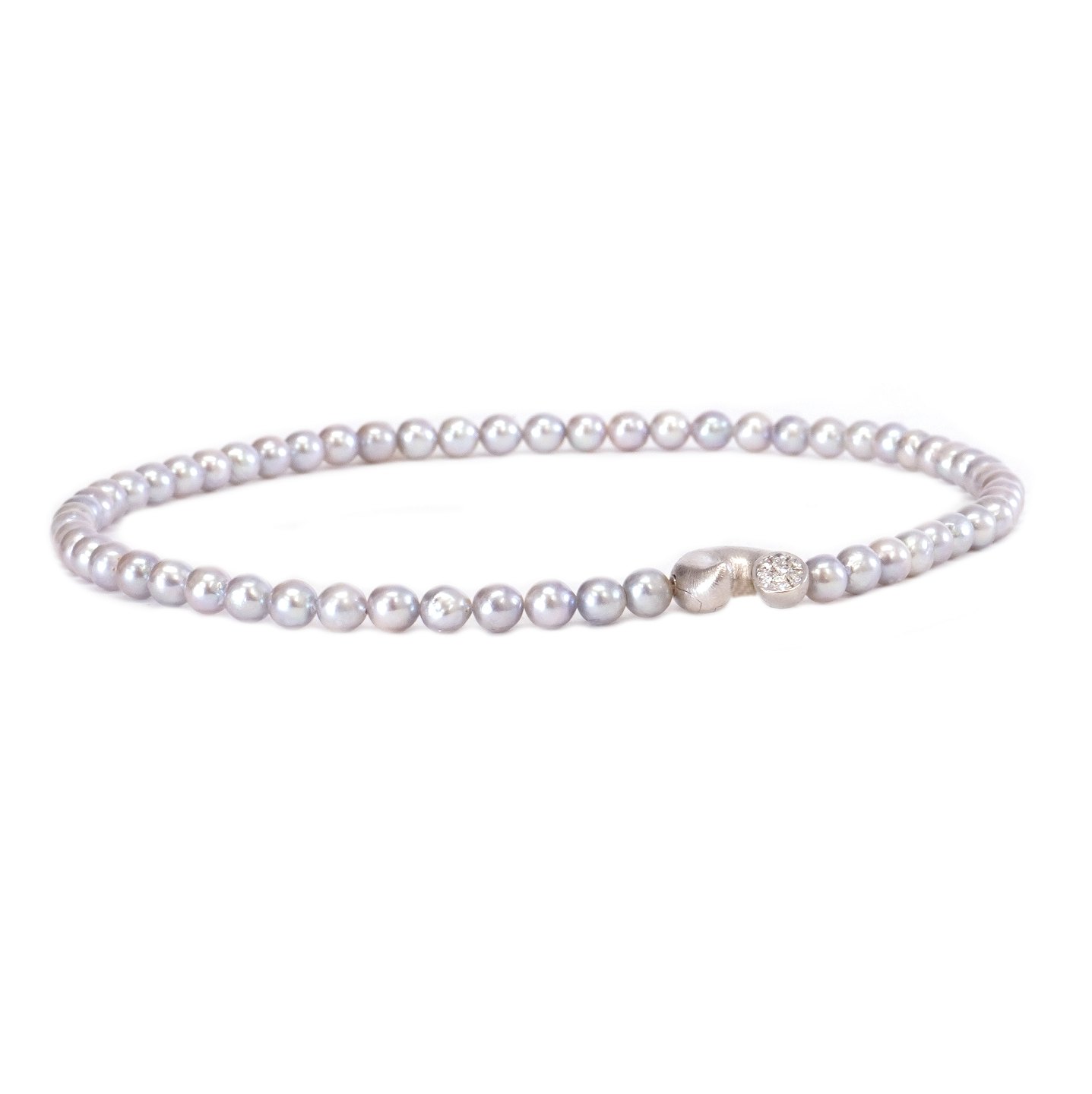 Ole Lynggaard 14kt hvidgulds lås med brillanter og tilhørende kulturperlekæde. Lås: 18x18mm