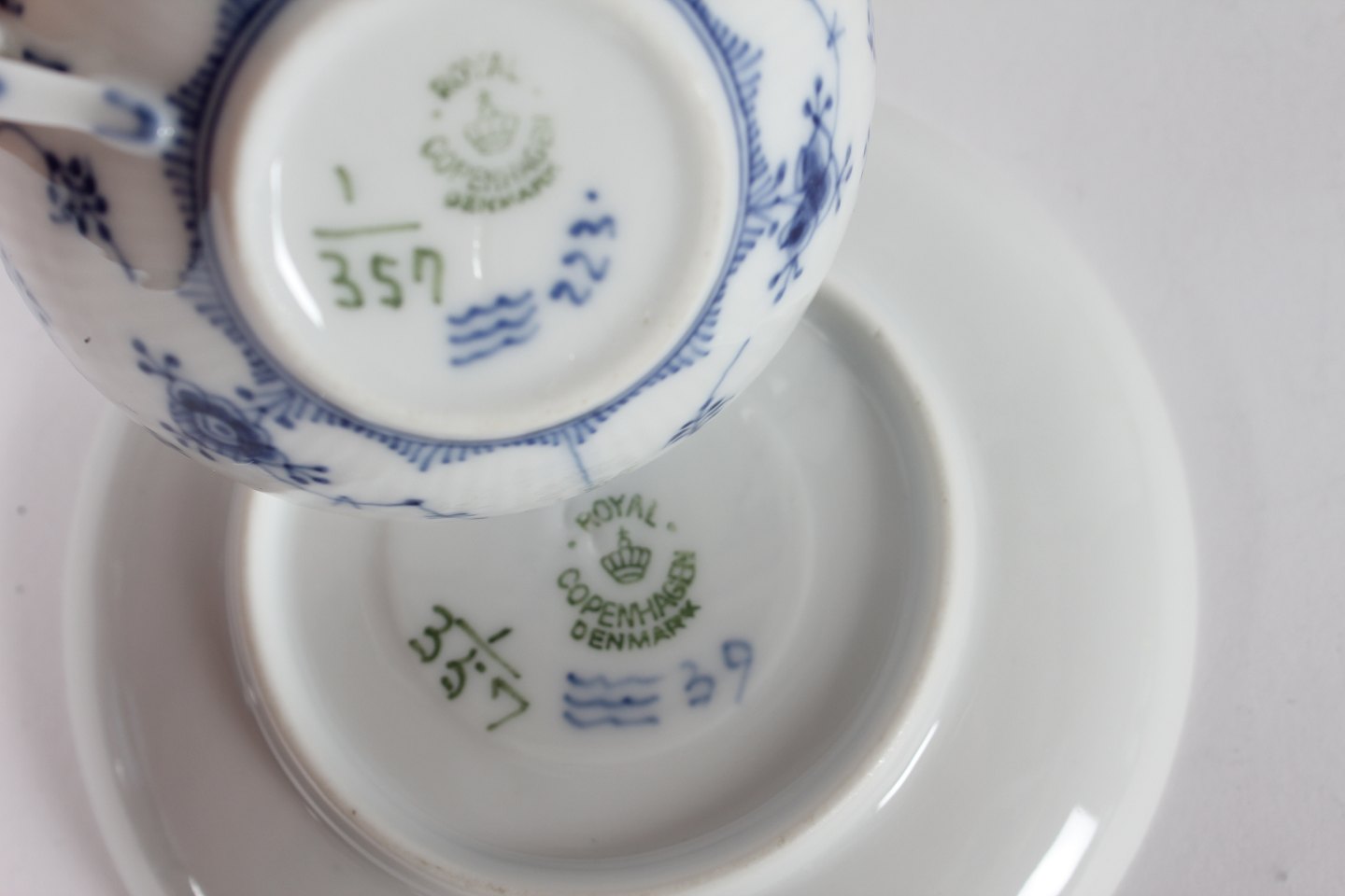 Beskrivelse: Royal Copenhagen Musselmalet Riflet