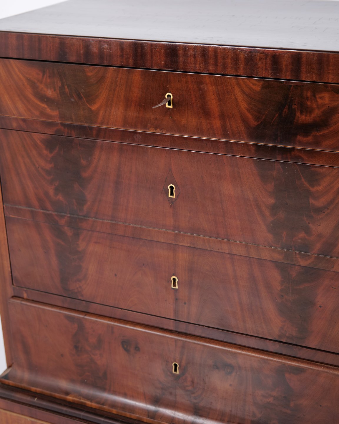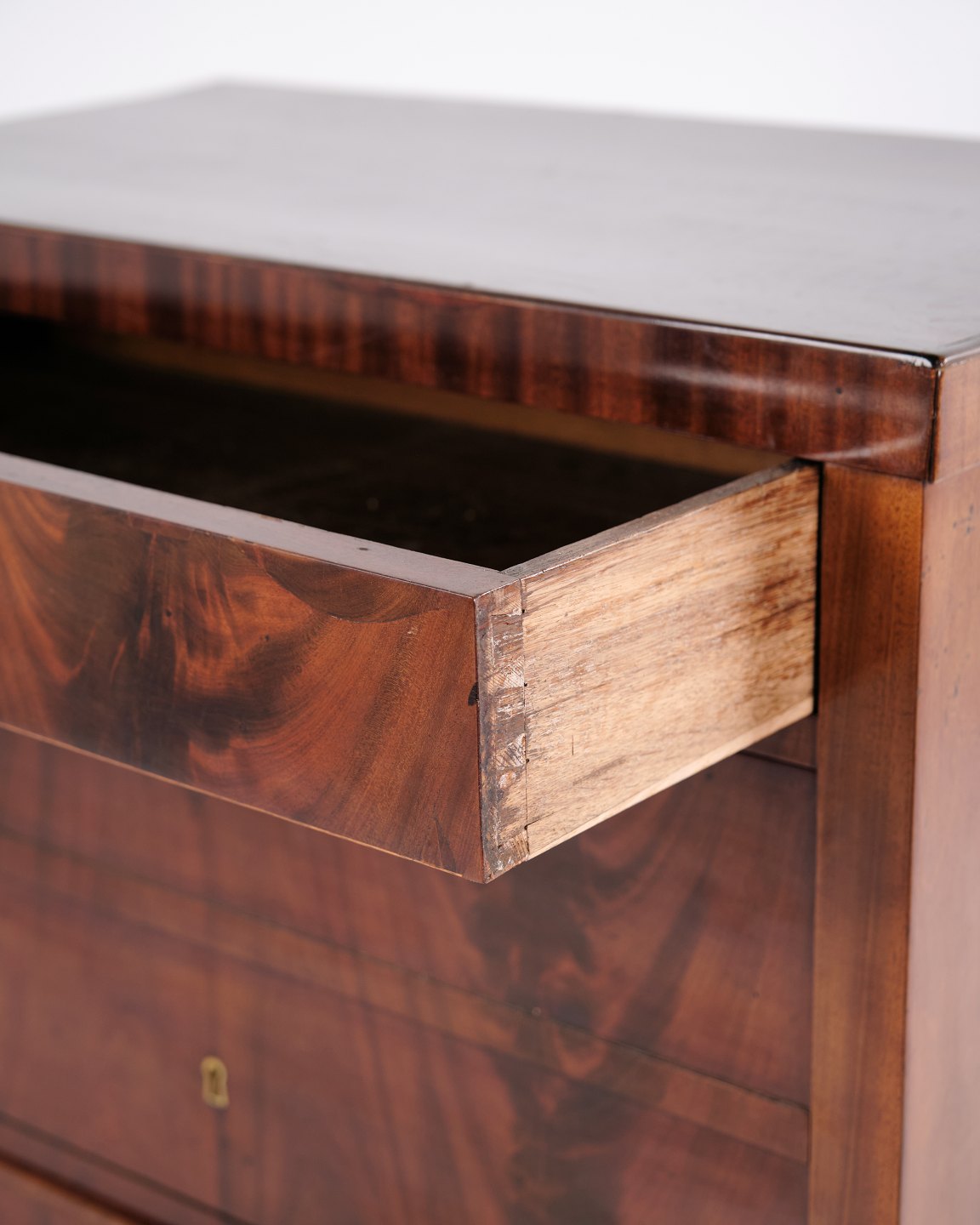 Sen Empire kommode – Flammet mahogni – 4 skuffer – Fransk håndpoleret – 1840’erne