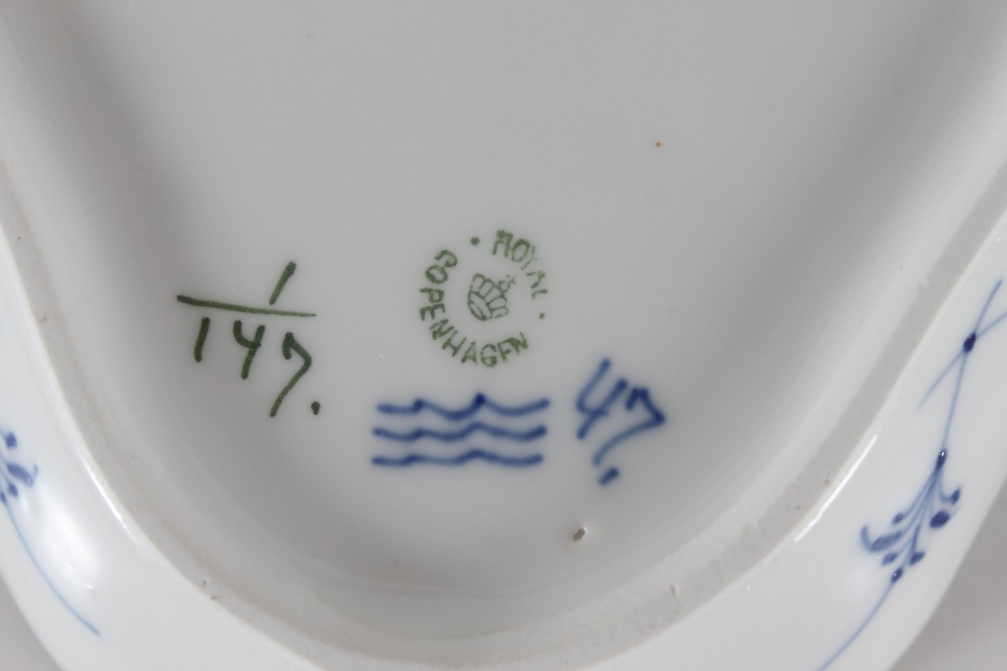 Beskrivelse: Royal Copenhagen Musselmalet Riflet