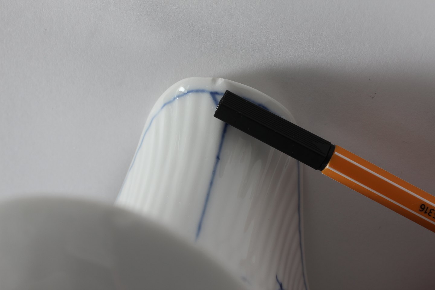 Beskrivelse: Royal Copenhagen musselmalet riflet