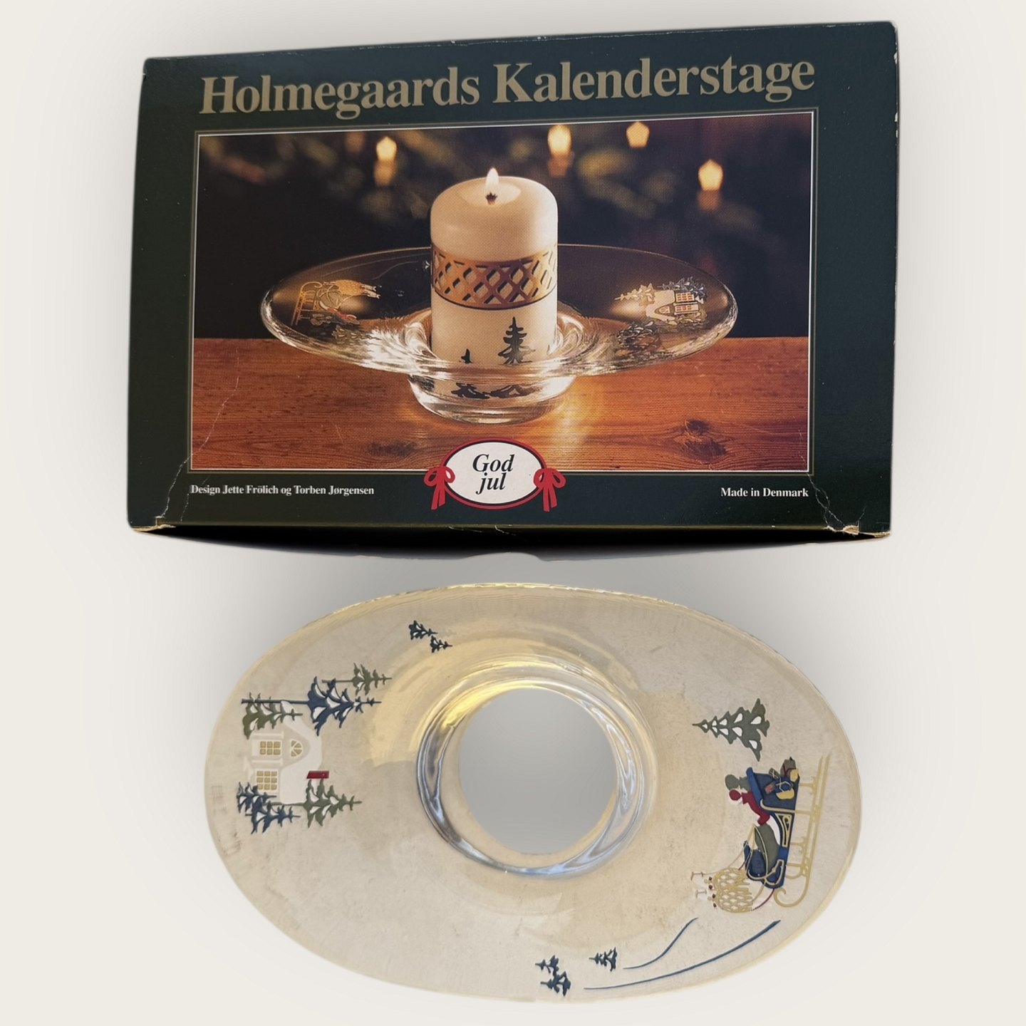 Beskrivelse: Holmegaards kalenderstage, Golden Christmas, kalenderlysestage fra 1998, 18x11cm, *Fin stand og i original æske*