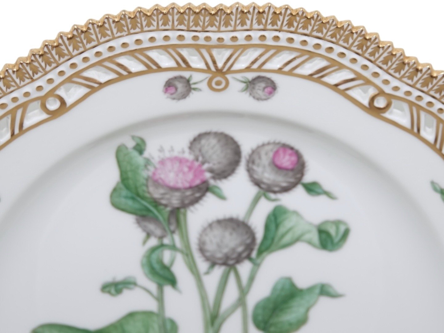 Beskrivelse: Royal Copenhagen Flora Danica, middagstallerken med gennembrudt kant.