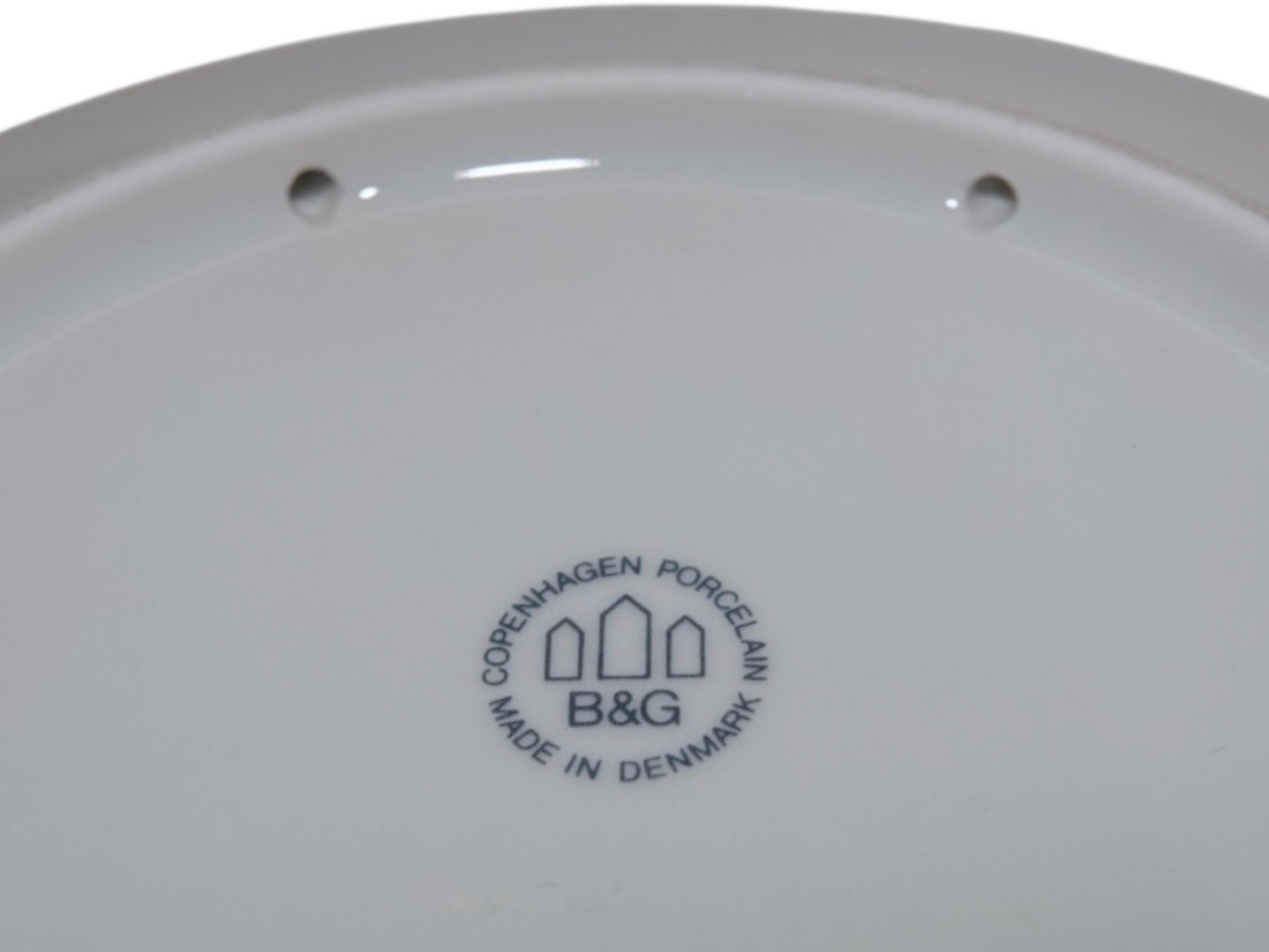 Beskrivelse: Bing & Grøndahl julestel, stor kagetallerken med julenisse, der går med bageremedier. Der også huller til ophæng.