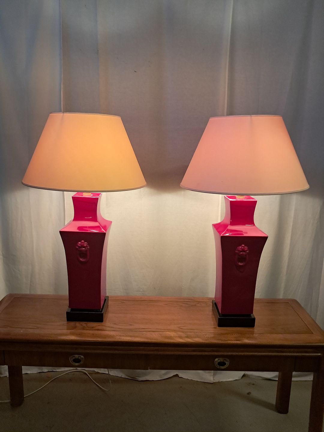 : 2 Bordlamper i pocelæn med skærme, fra 2000erne.
