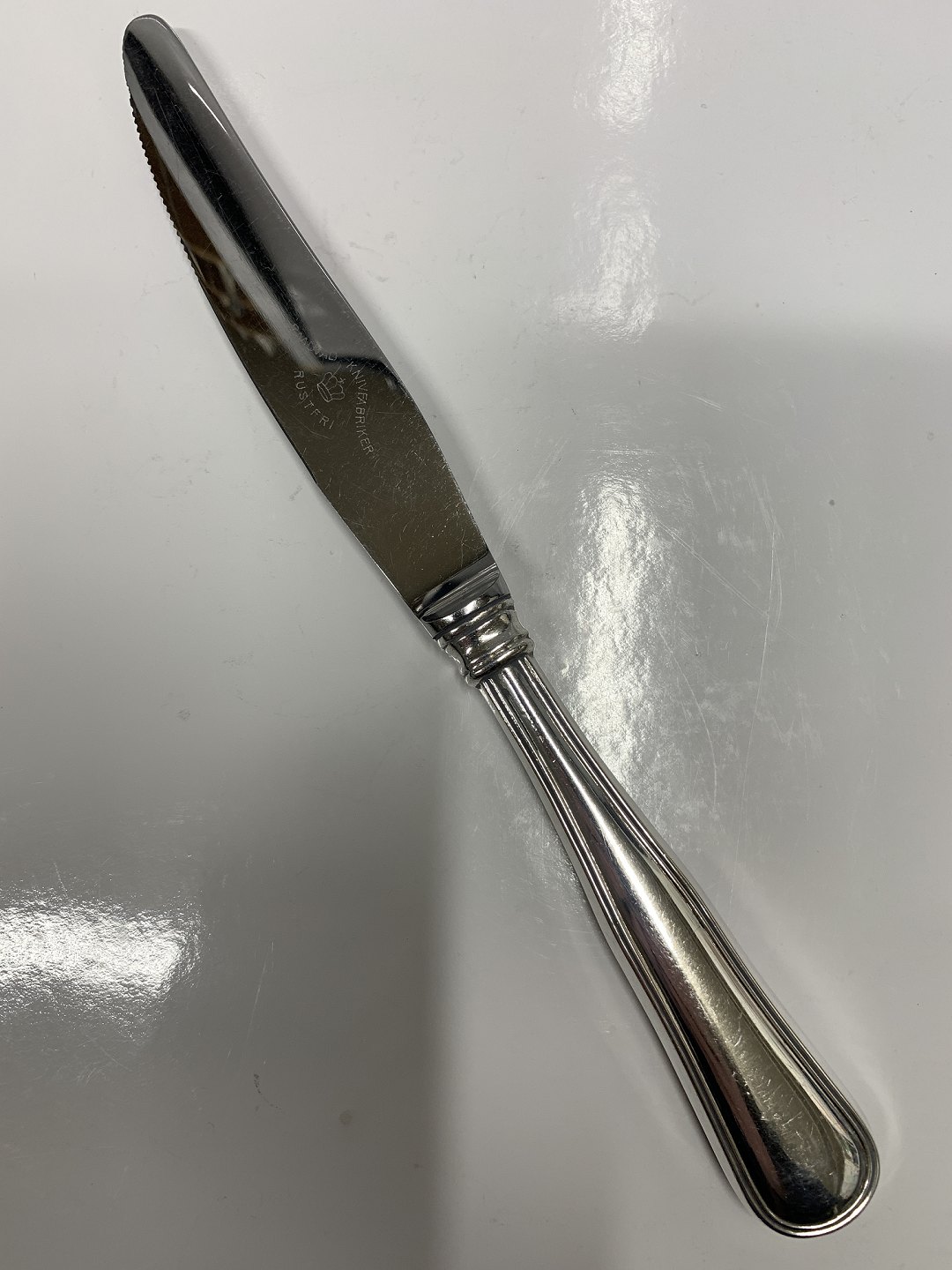 Beskrivelse: Dobbeltriflet Sølv, Middagskniv med/ savskær