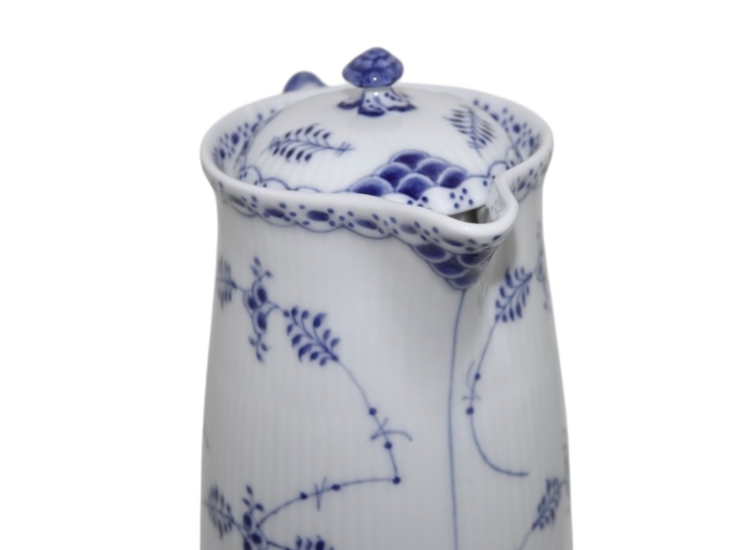 Beskrivelse: Royal Copenhagen Musselmalet Halvblonde, sjælden chokoladekande.
