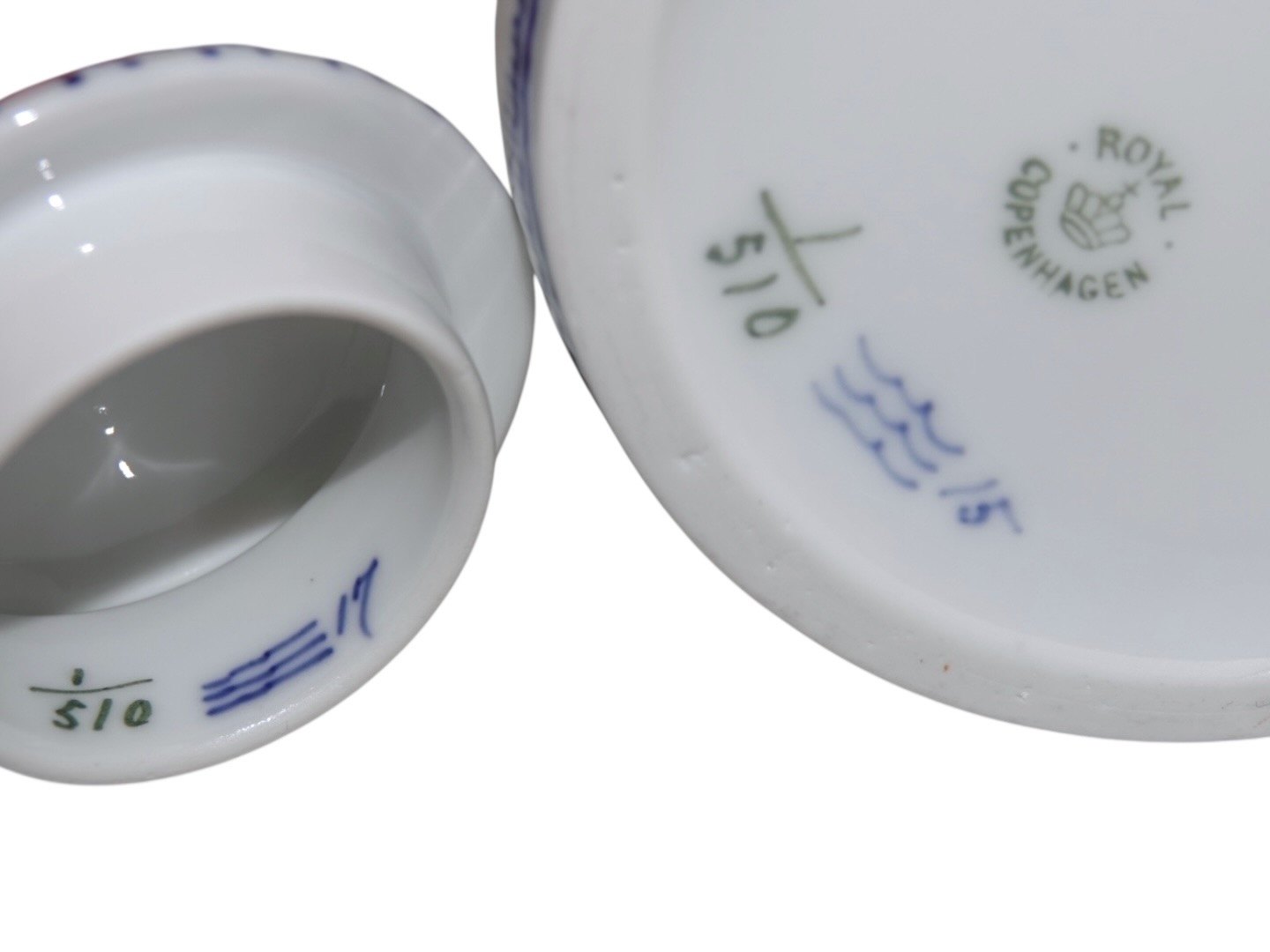 Der er et par medfødte glasurbrister på toppen og undersiden af hanken, se nærfotos, ellers perfekt stand uden fejl.
