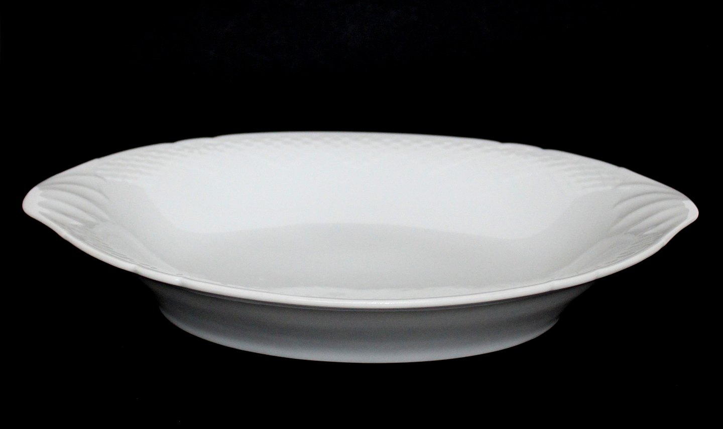 Beskrivelse: Bing & Grøndahl, Elegance, Stort ovalt brødfad meget sjælden og smukt. Nr. 195. Længde 34 cm. Bredde 24,5. Højde 5,5 cm. II. sortering. Enkelte overfladeridser efter brug. Pris: 975 kr.