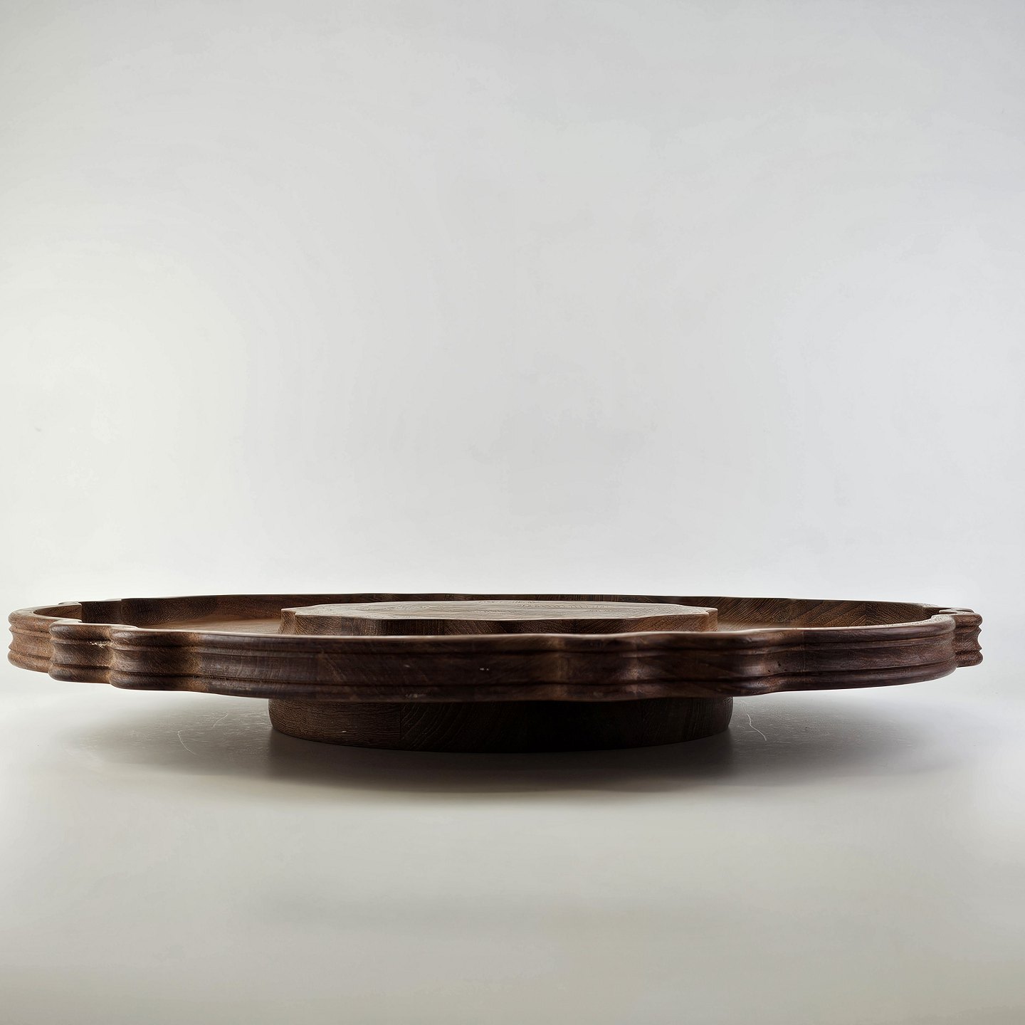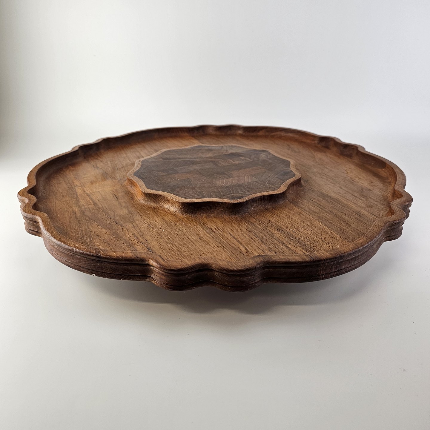 Beskrivelse: Roterende serveringsbakke i teaktræ