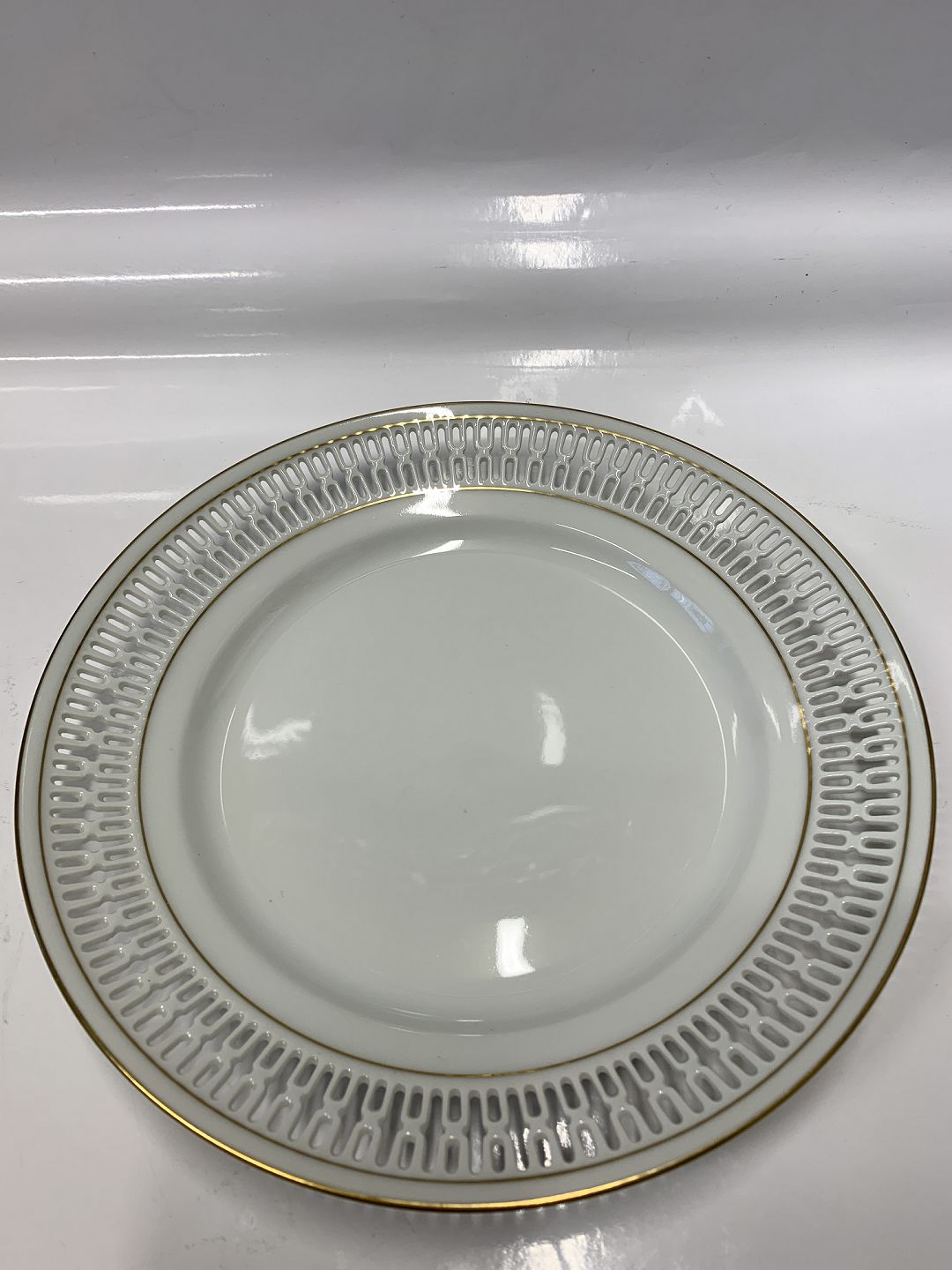 Beskrivelse: Bing & Grøndahl, Haga, Frokosttallerken med guld og gennembrudt kant.